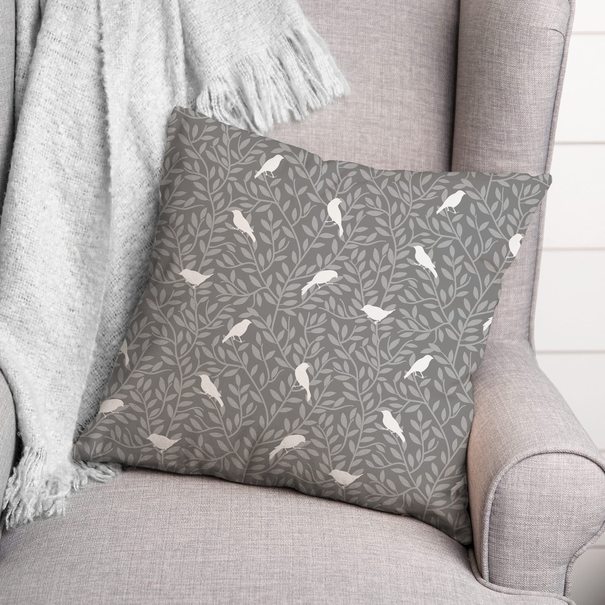 18" Birds On Leaves Indoor/Outdoor Pillow