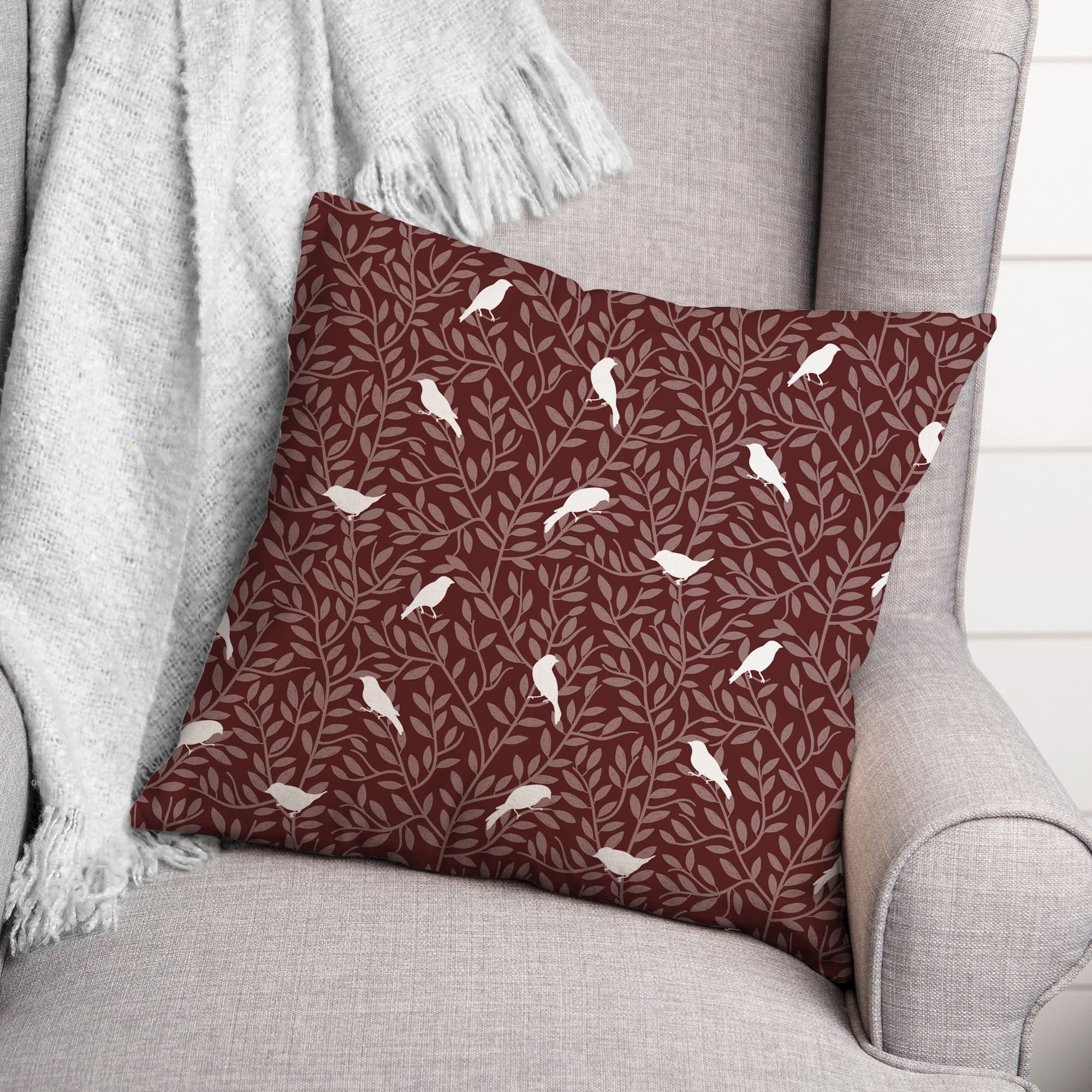 18" Birds On Leaves Indoor/Outdoor Pillow