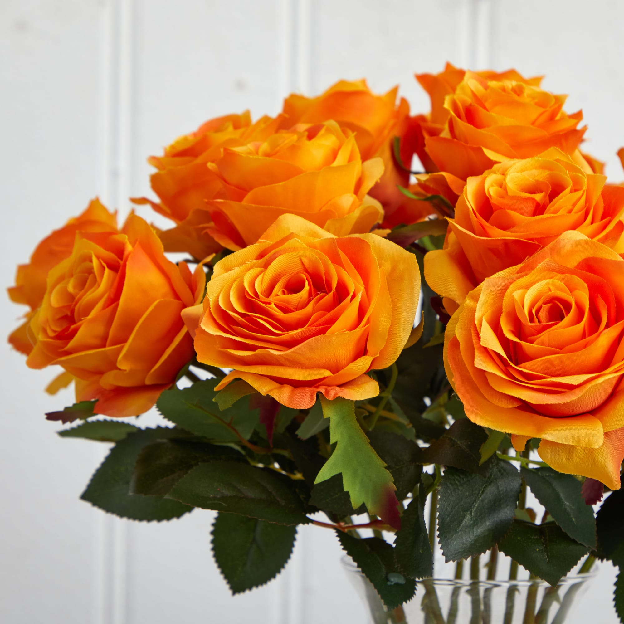 18" Blooming Orange Yellow Roses in Decorative Vase