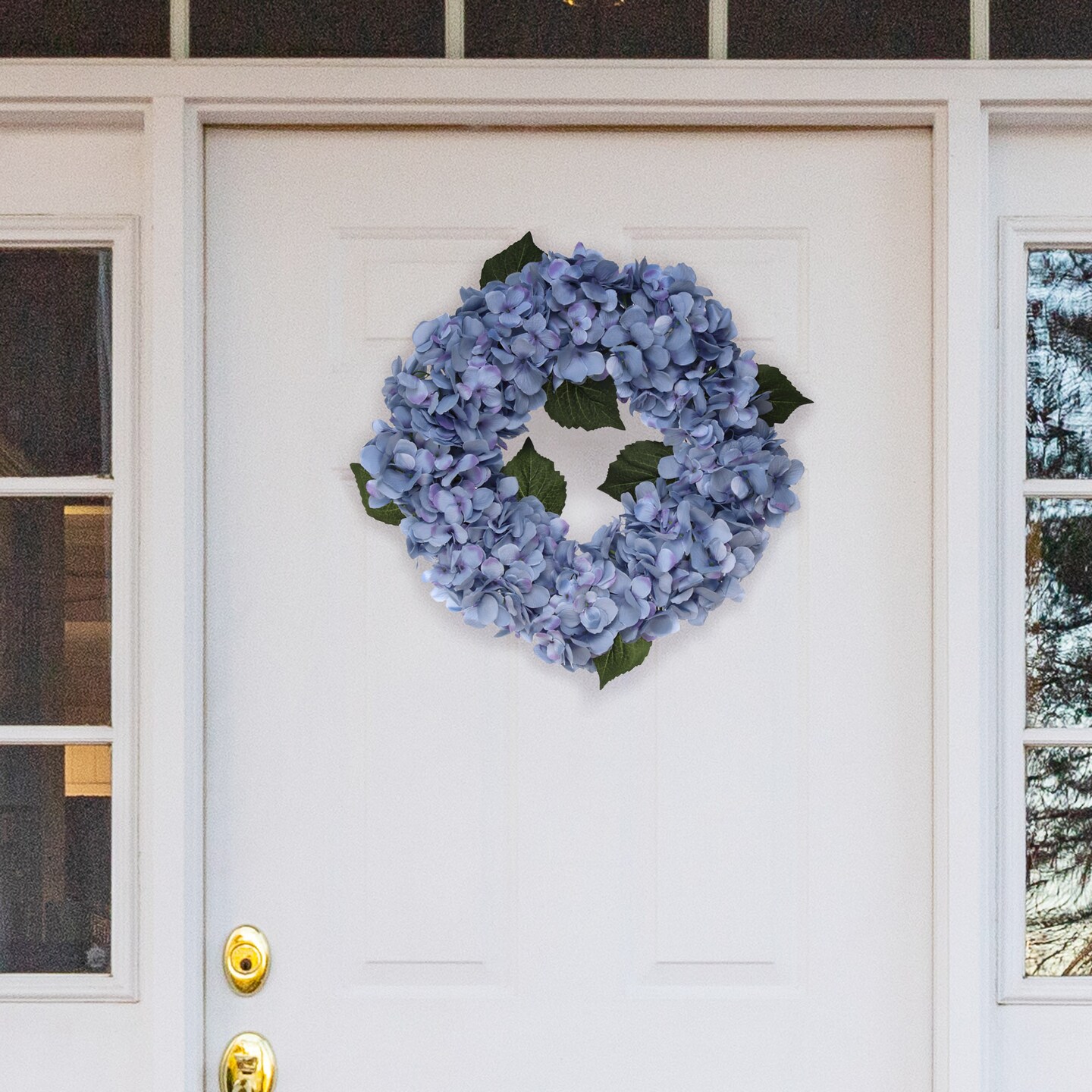 18" Blue Artificial Hydrangea Wreaths - 2-Pack, Silk Flowers with Grapevine Rings - Perfect for Doors, Walls - Elegant Year-Round Decor, Floral Home by Artificial Flowers