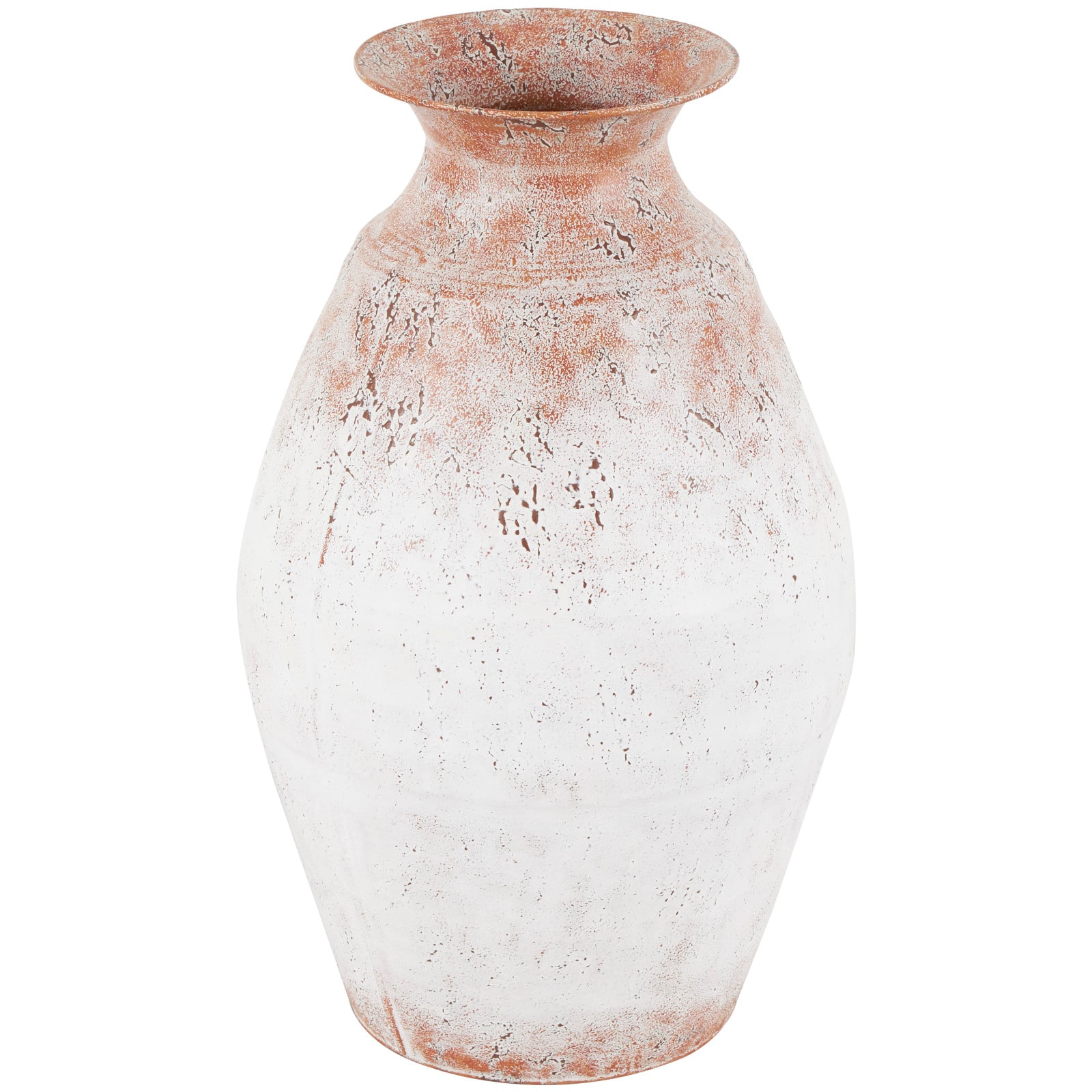 18" Copper Metal Distressed Textured Vase with Terra Cotta Accents