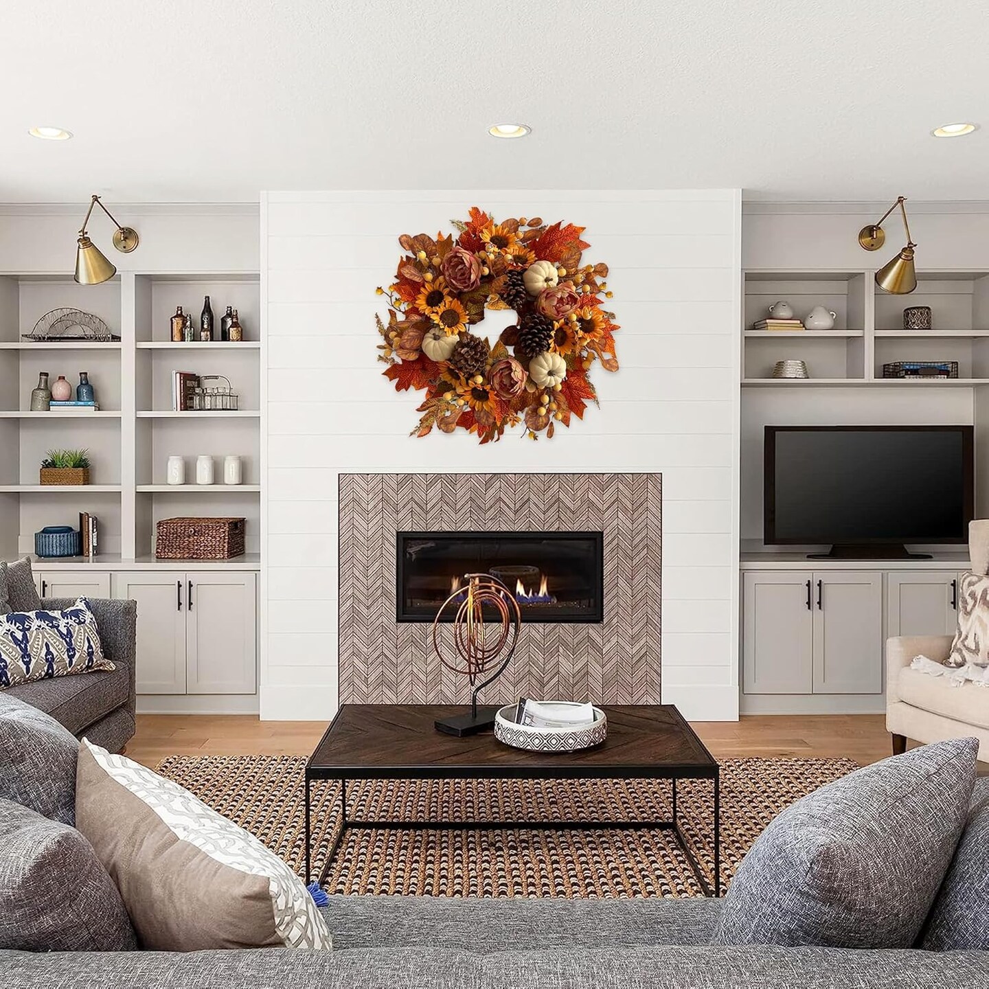 18" Fall Wreaths for Front Door with Maple Eucalyptus Leaves Pumpkin