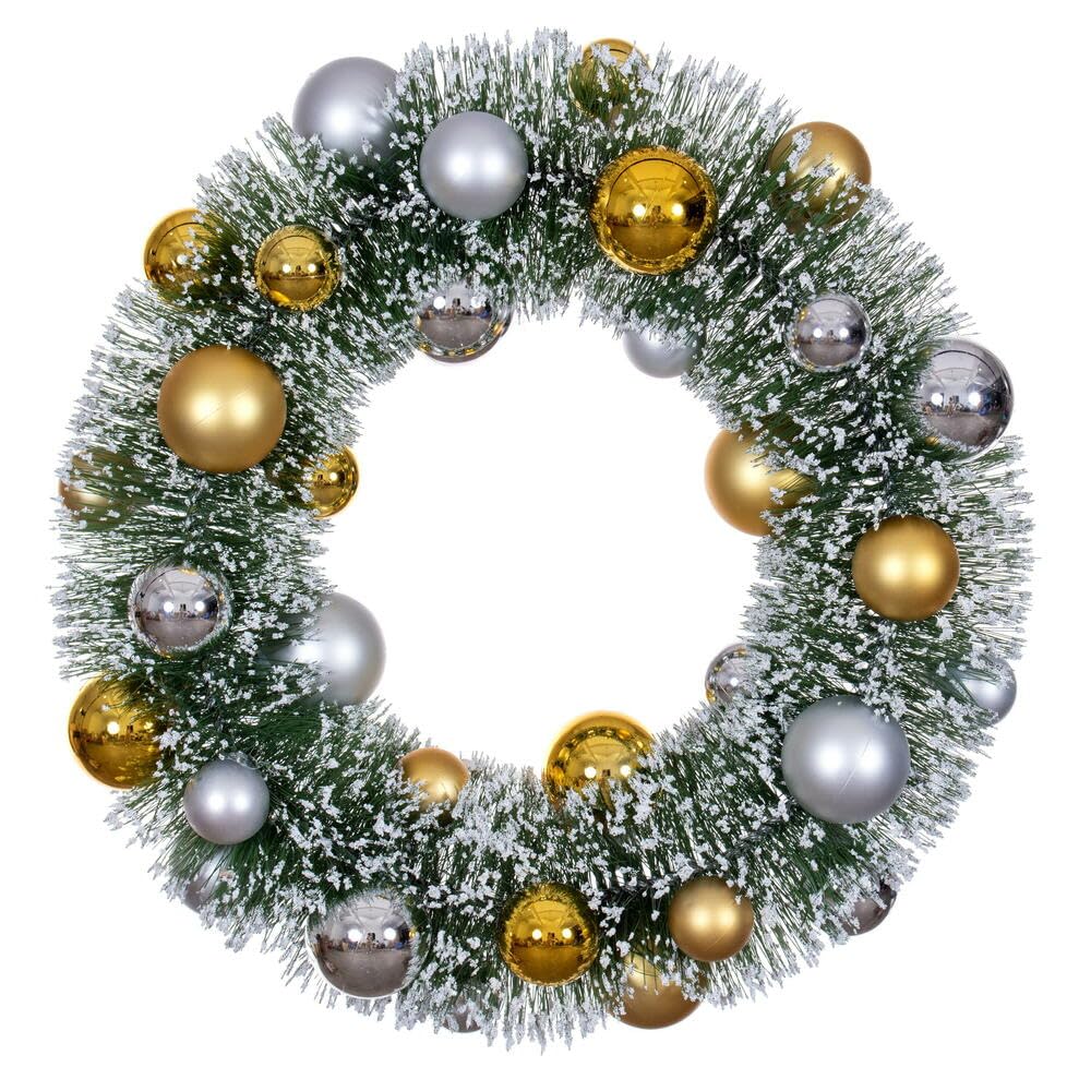 18" Frosted Green Wreath Silver/Gold