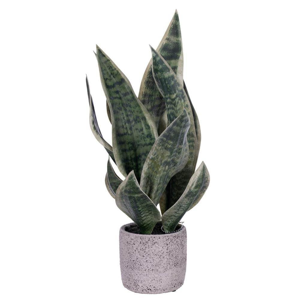 18" Green Snake Plant in Cement Pot