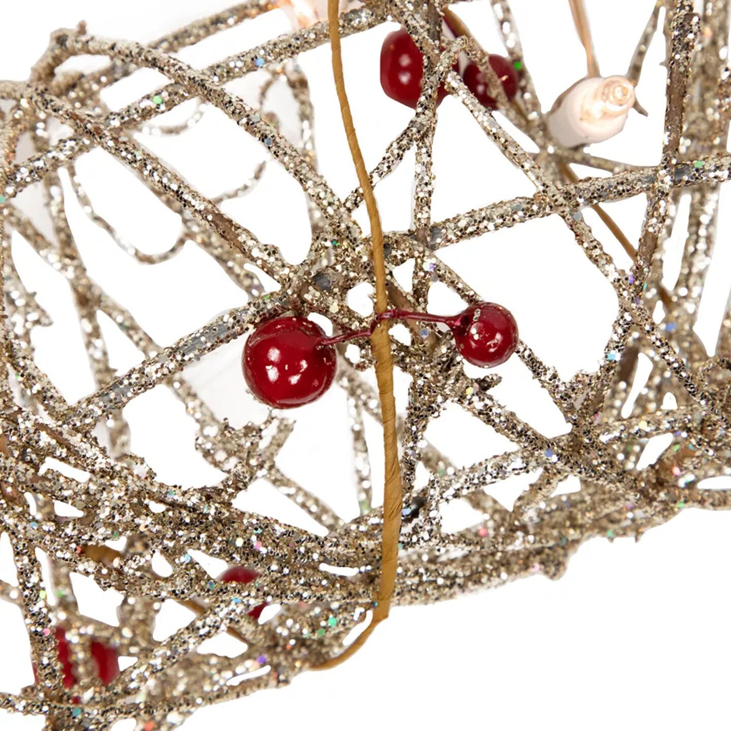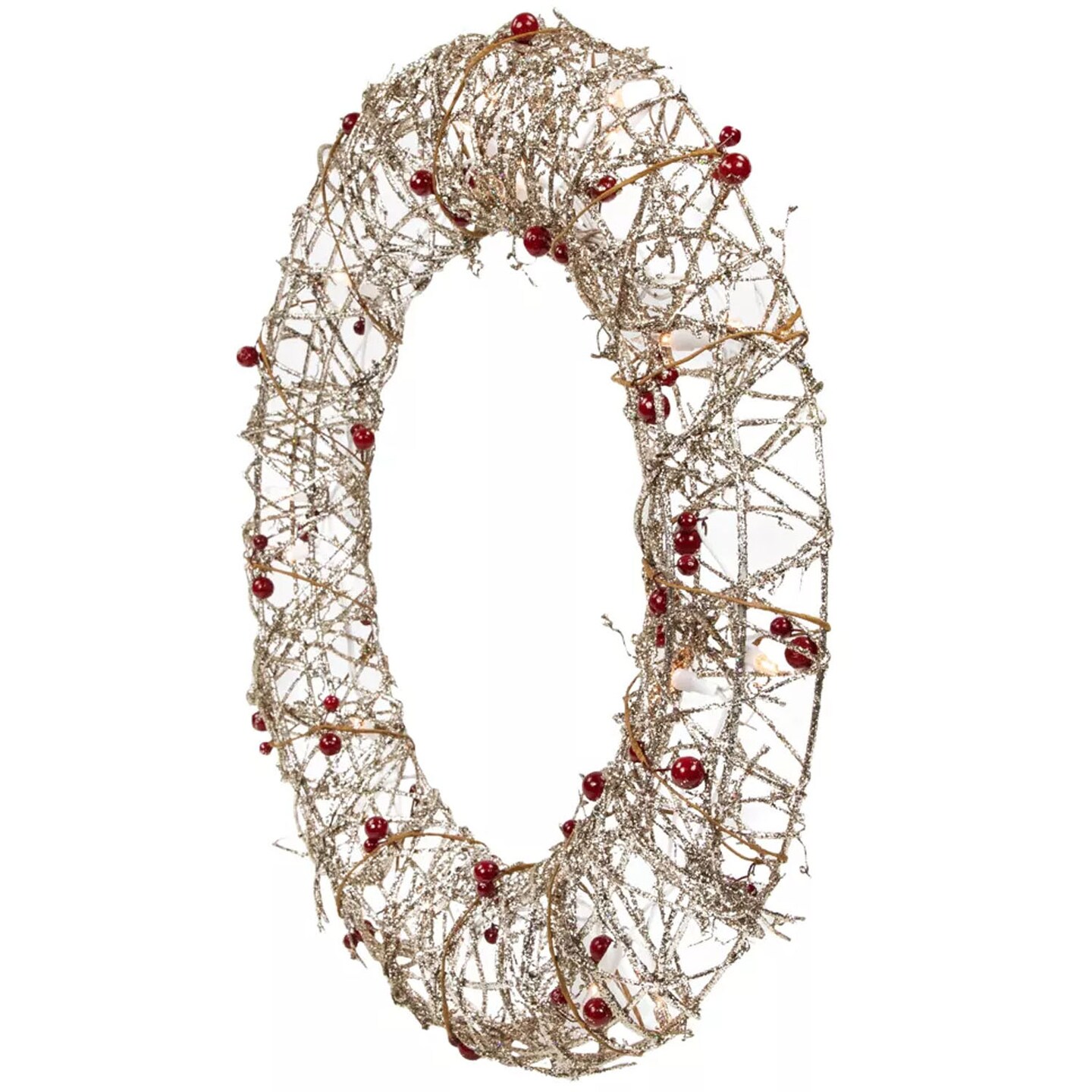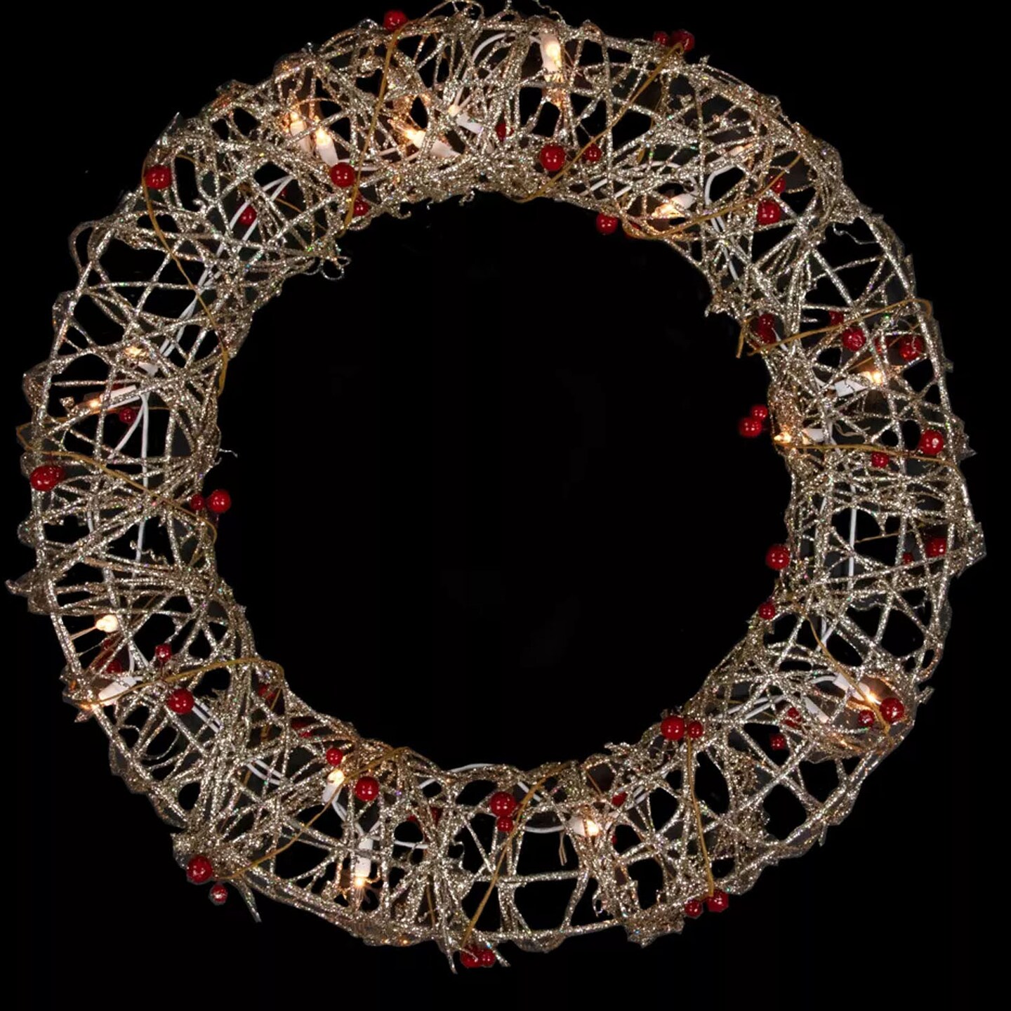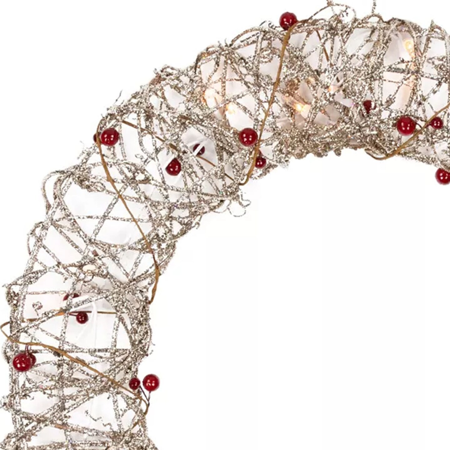 18 Inch Prelit Champagne Gold Glittered Rattan Berry Christmas Wreath