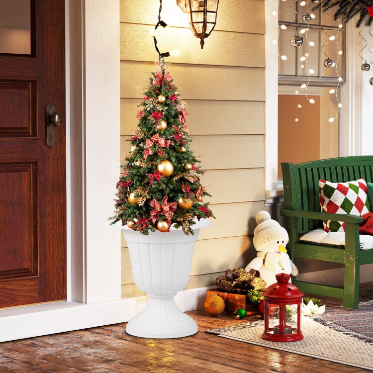 18 inch Tall Vintage Planters Set of 2 with Pedestal Base and Pre-marked Drain Hole-White