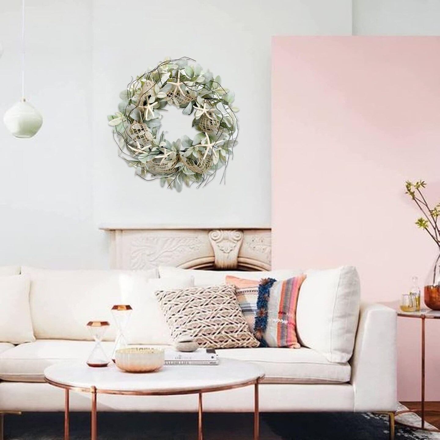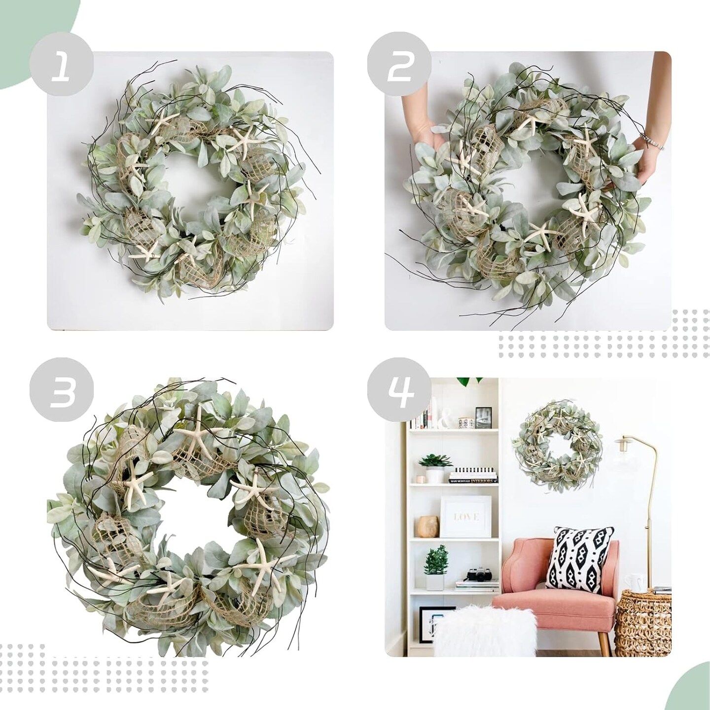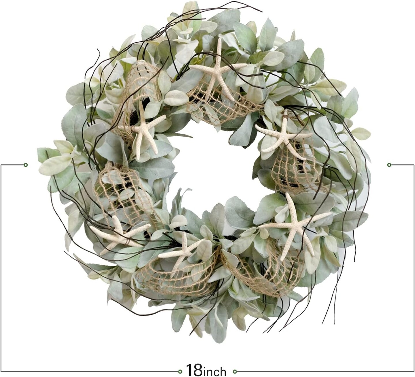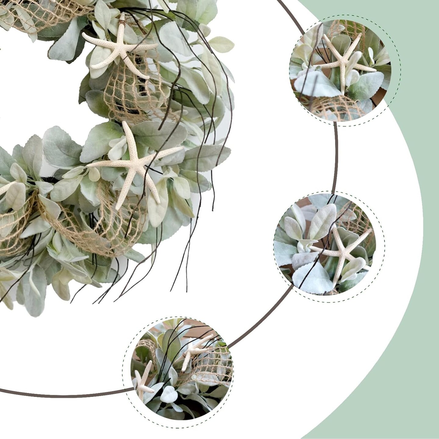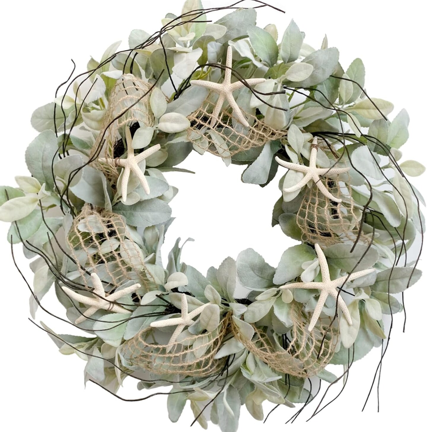 18” Lamb’s Ear & Starfish Wreath – Rustic Farmhouse Coastal Décor