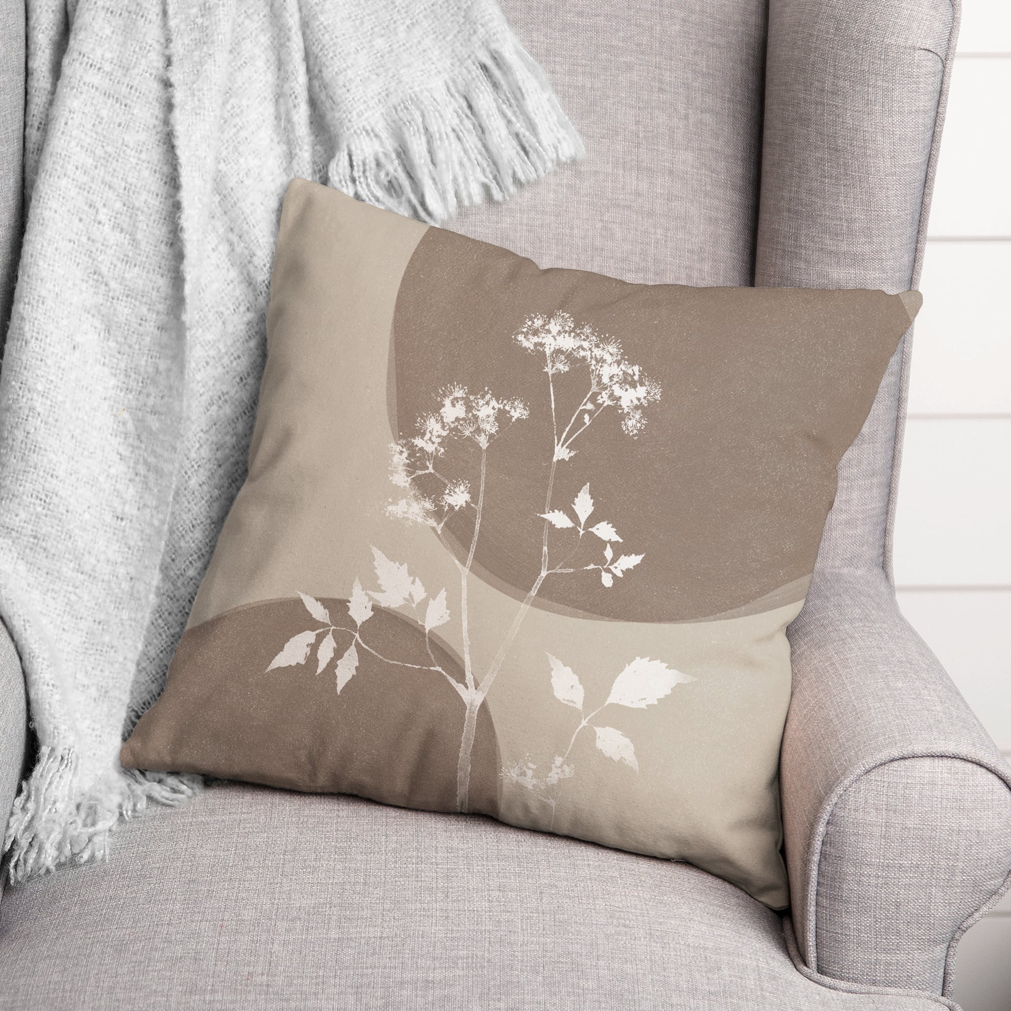 18" Neutral Boho Botanical Indoor/Outdoor Pillow