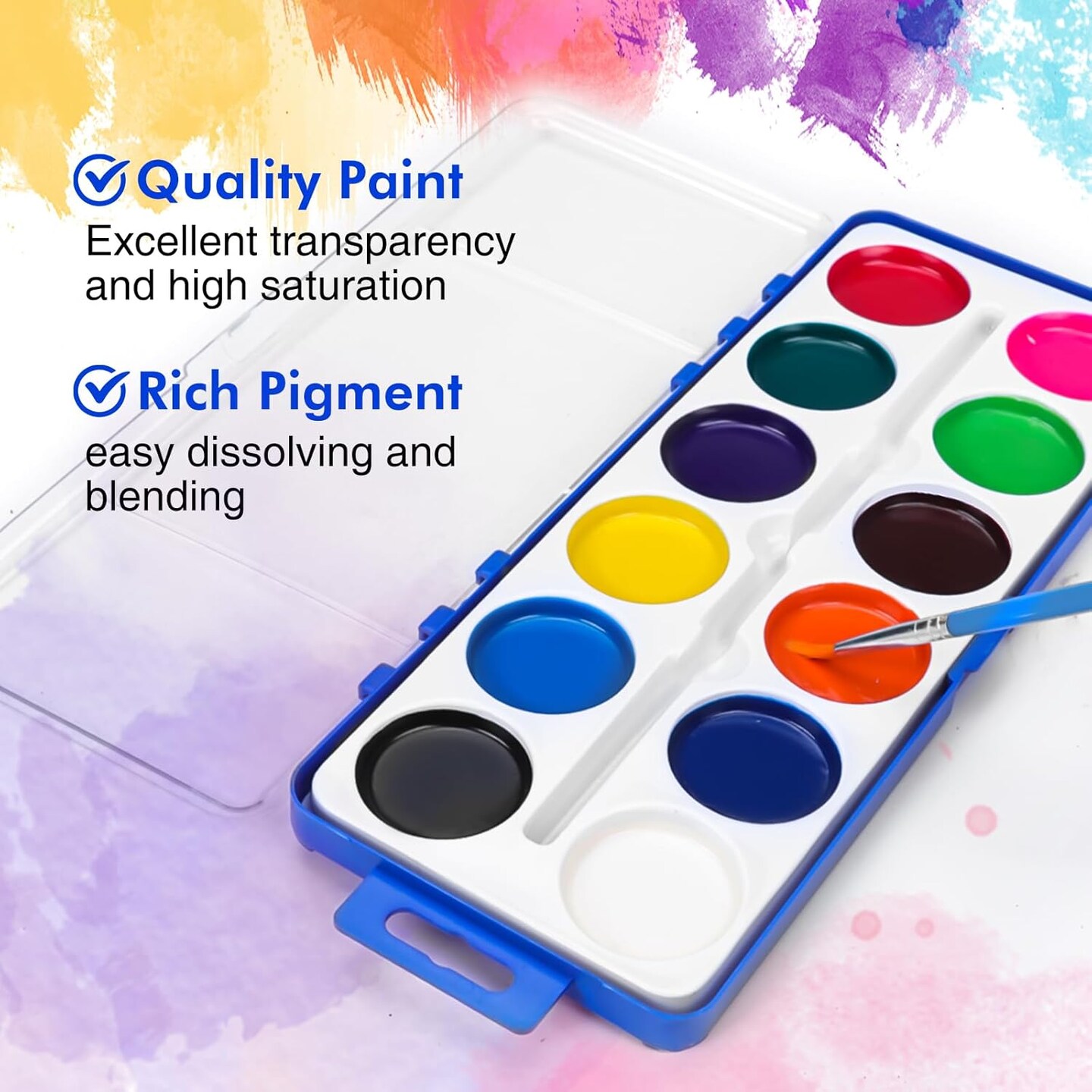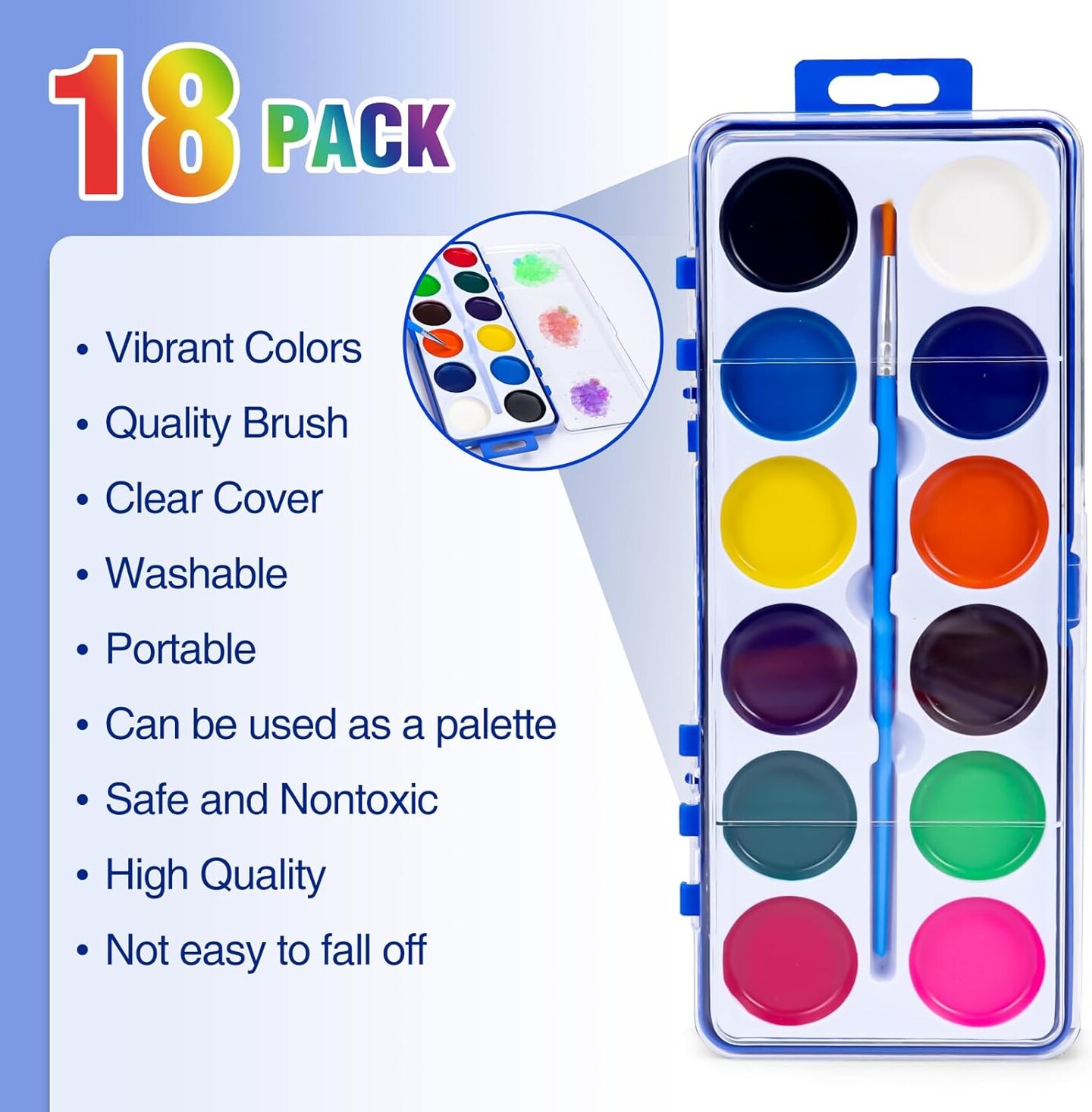 18 Pack Watercolor Paint Set for Kids, 12 Colors Watercolors Paints with Paint Brush, Kids Watercolor Paint Set for Party Favor, Classroom.