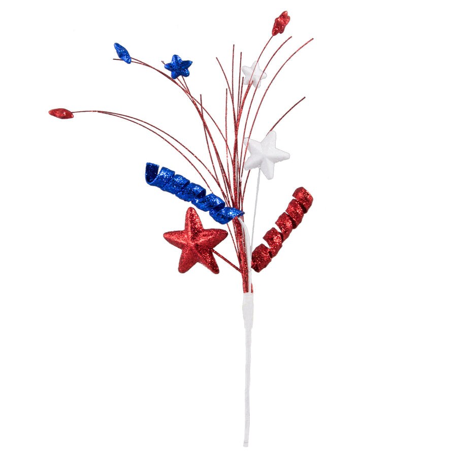 18" Patriotic Red, White & Blue Glitter Star Spray Pick – 4th of July Decoration