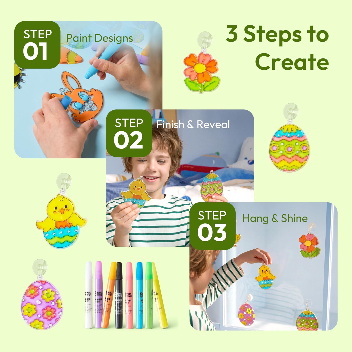 18 Pcs Easter Suncatchers Crafts Set, Suncatcher Window Art Craft Kit for Kids Art & Home School Activities Party Favor Easter Party Supplies
