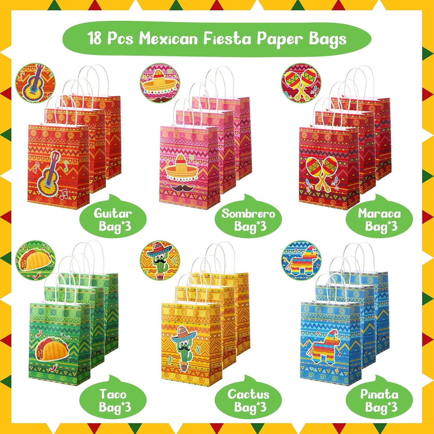 18 Pcs Mexican Fiesta Gift Bags Fiesta Paper Bags Cinco De Mayo Bags Candy Treat Favors Goodie Bags Mexican Themed Fiesta Party Favor Bags Taco Bar Decorations for Mexico Birthday Party Supplies