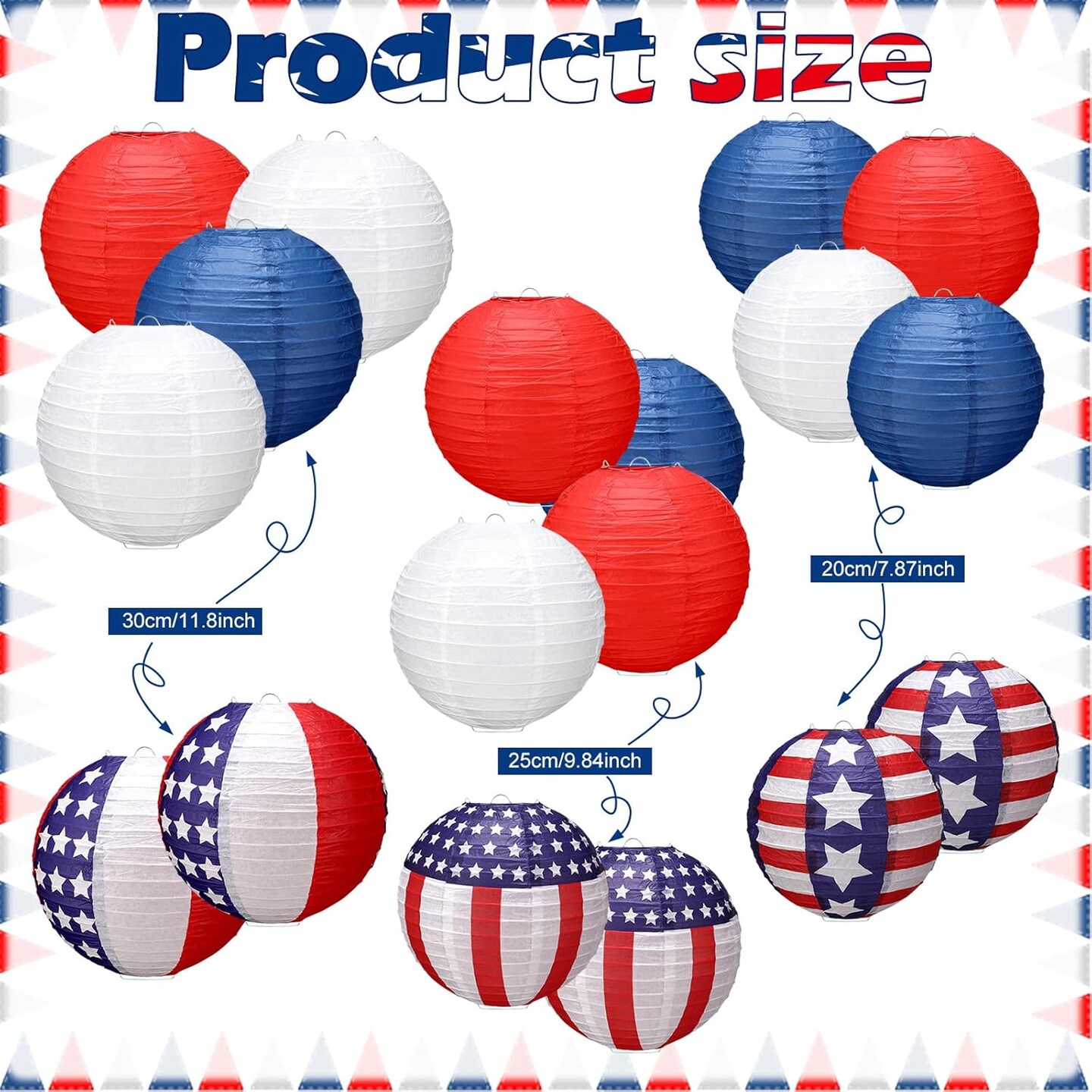 18 Pcs Patriotic Hanging Paper Lanterns Red White and Blue Lantern