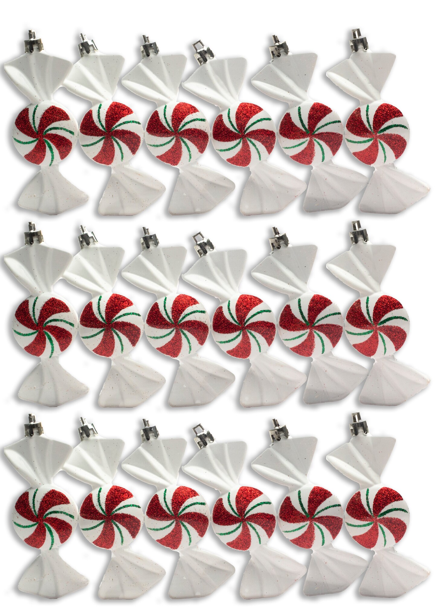 18 Piece Christmas Hanging White Candy Ornament with Iridescent Glitter Swirl Design