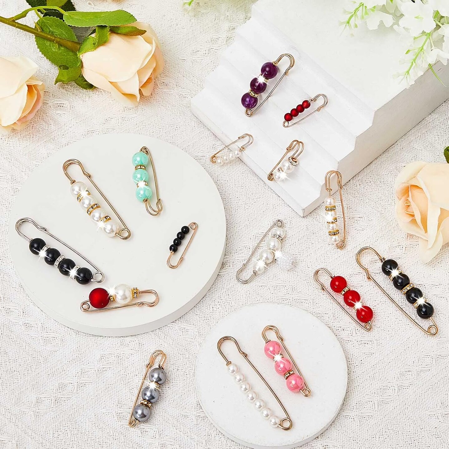 18 Piece Pearl Brooch Pins Women Decorative Safety Pins Clothing Shawl Clips Artificial Pearls Brooch Elegant Cardigan Collar Clips for Women Dress Skirt Sweater(Bright Style)