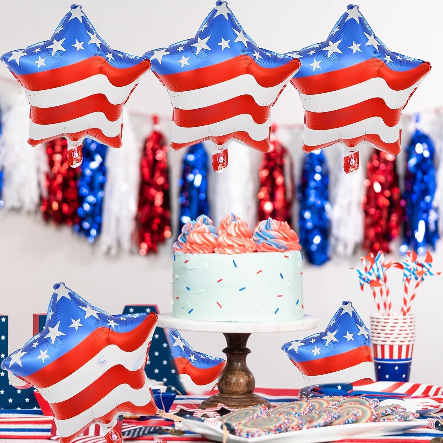 18 Pieces 18 Inches American Flag Stars Balloons, USA Red White Blue Aluminum Foil Balloons for 4th of July, Independence Day Patriotic Birthday Party Decorations