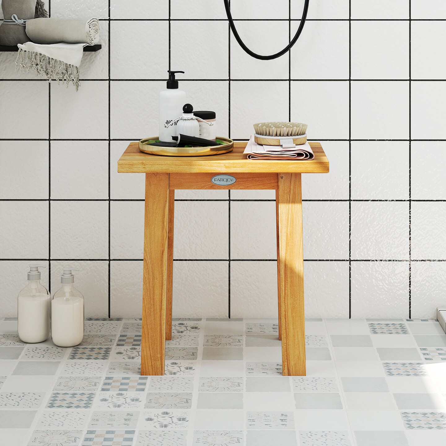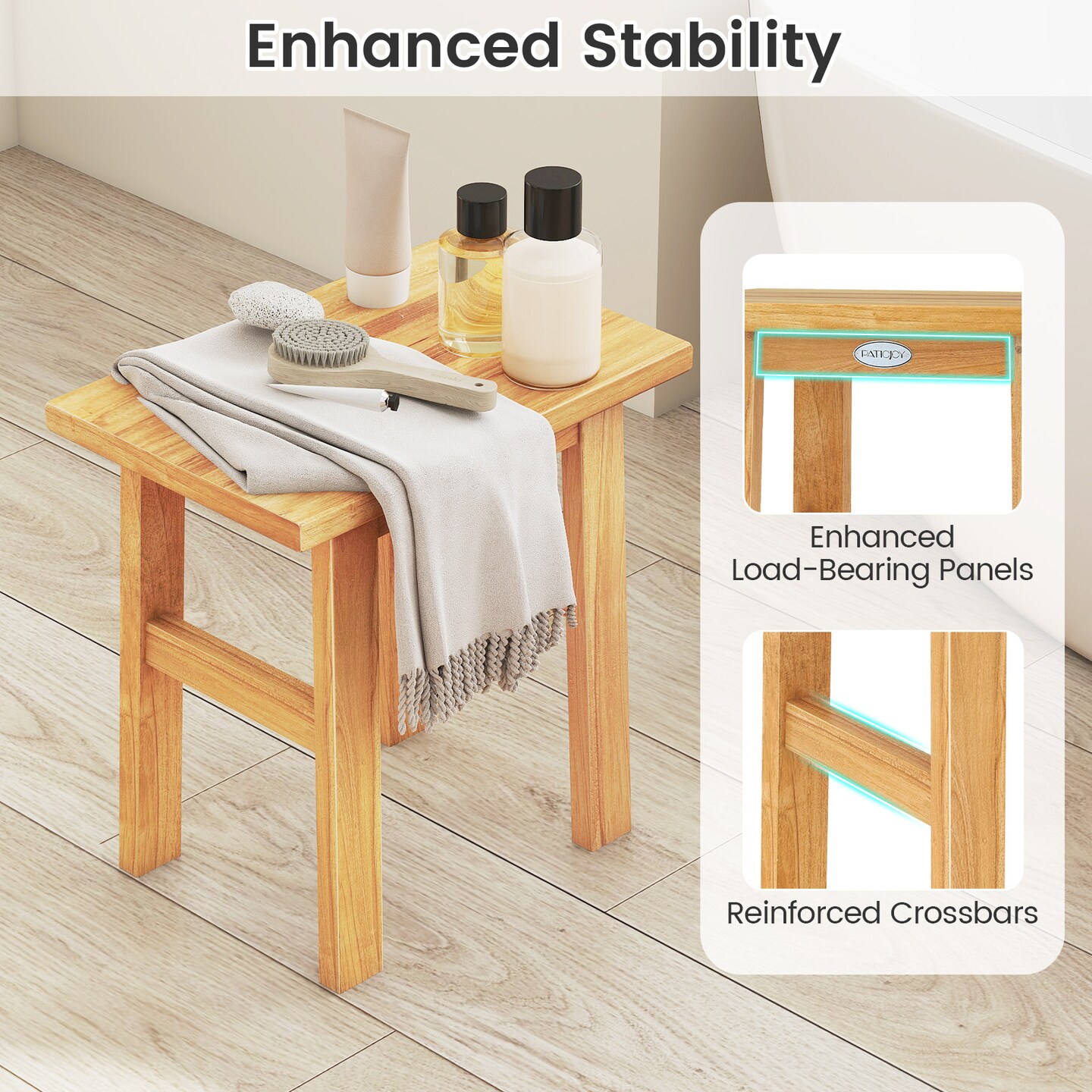 18" Teak Bath Stool and Shower Bench for Spa or Shaving Legs