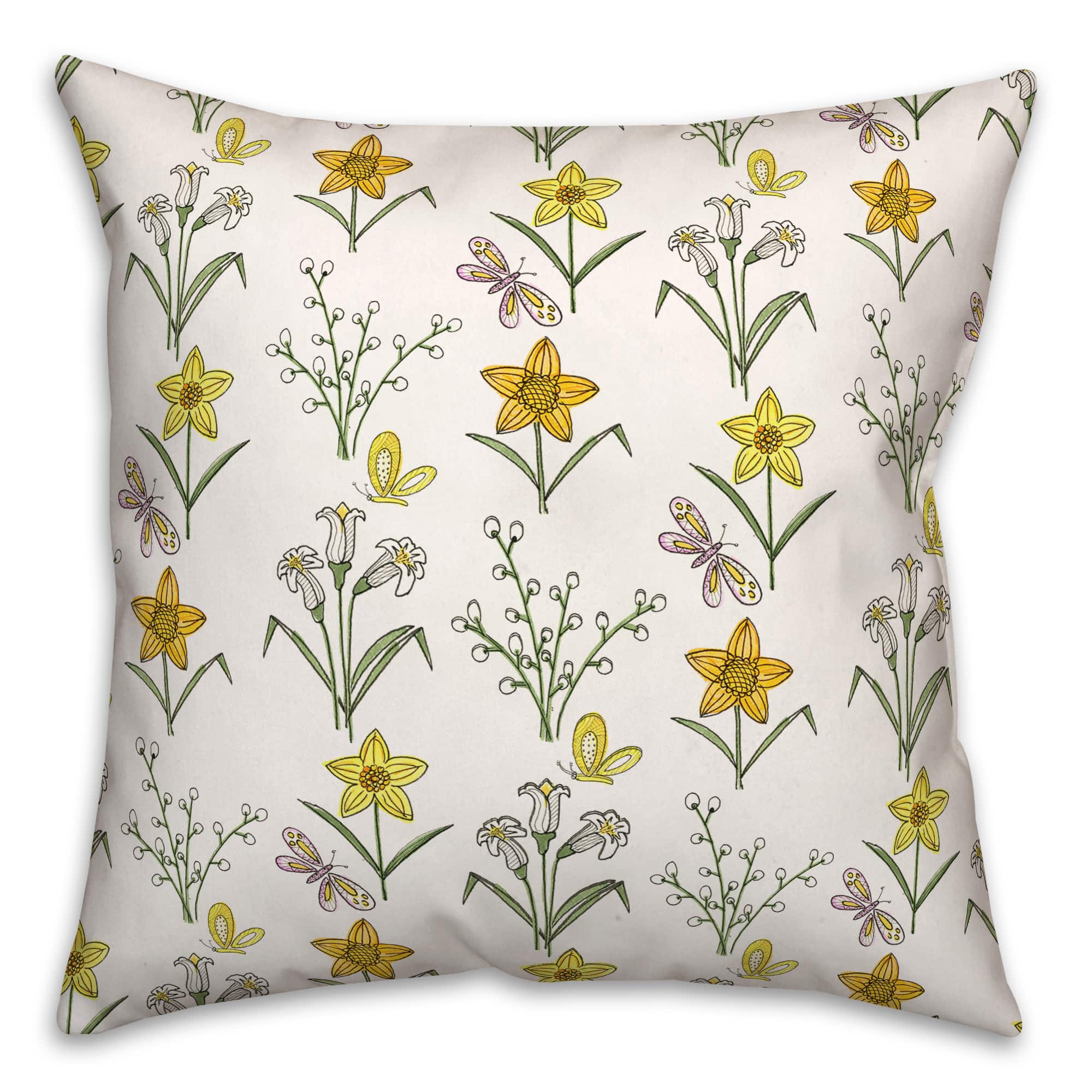 18" White Spring Pattern Indoor/Outdoor Pillow