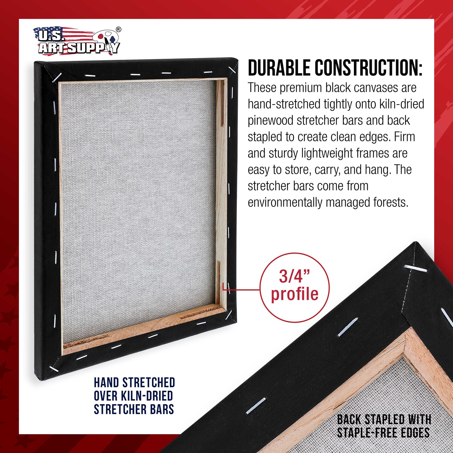 18 x 24 inch Black Stretched Canvas 12-Ounce Primed, 4-Pack - Professional Artist Quality 3/4" Profile, 100% Cotton, Heavy-Weight, Gesso