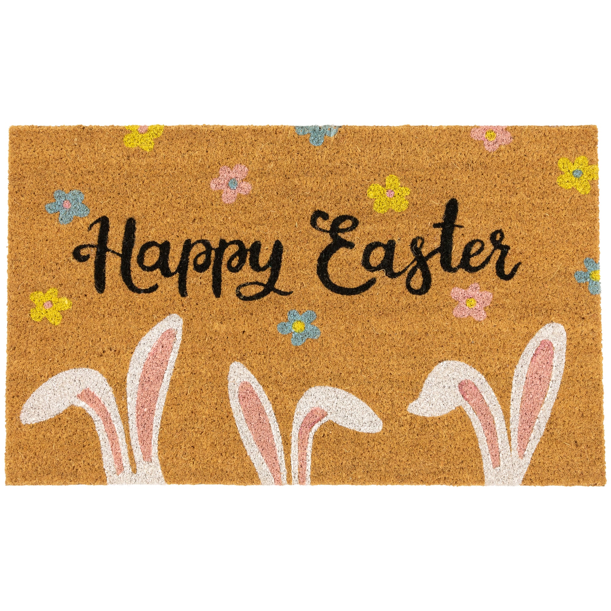 18" x 30" Natural Coir Happy Easter Bunny Ears Doormat