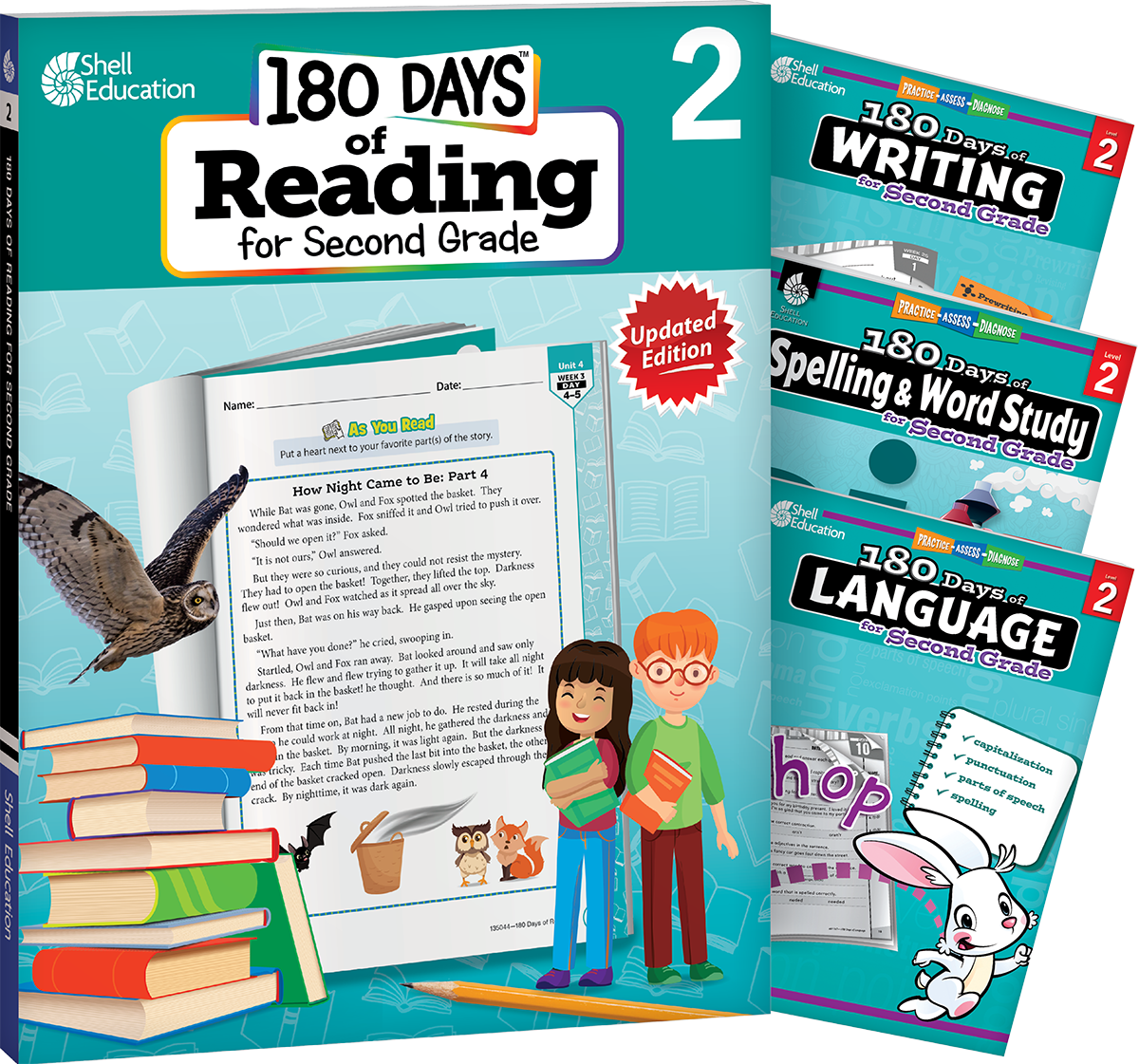180 Days™: Reading 2nd Ed, Writing, Spelling, & Language Grade 2: 4-Book Set