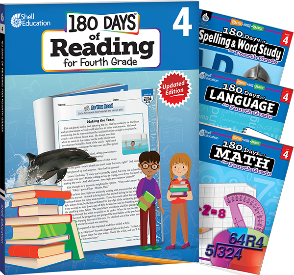 180 Days™: Reading, Spelling, Language, & Math Grade 4: 4-Book Set