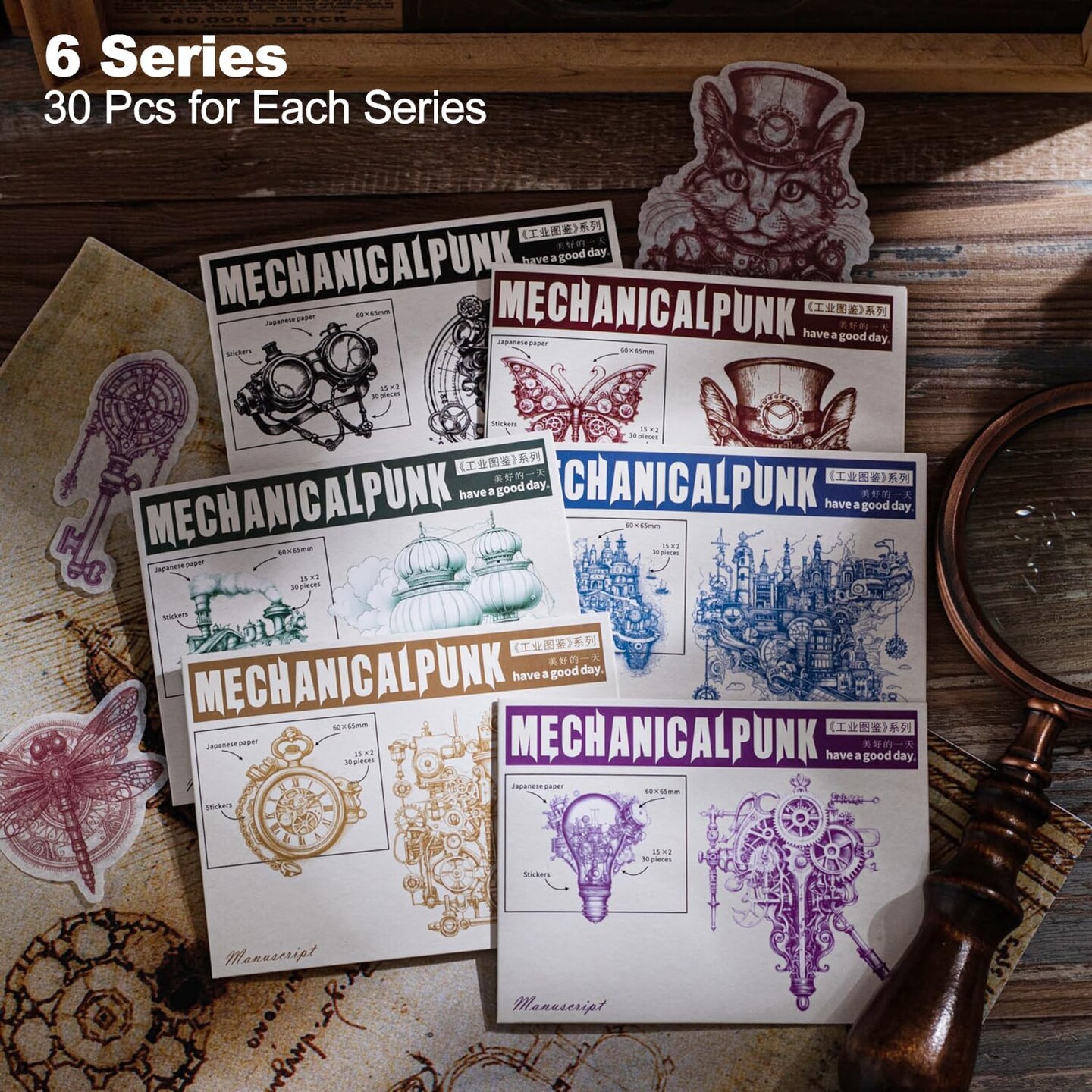 180 Pcs - Steampunk Washi Stickers (Industrial Punk) 2.56 x 2.36 x 0.17 inches
