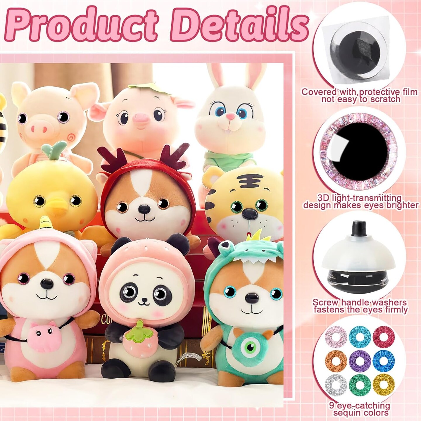 180pcs 18mm 3D Glitter Safety Eyes with Washers for Amigurumi, Crochet, Dolls & Toys (9 Colors)