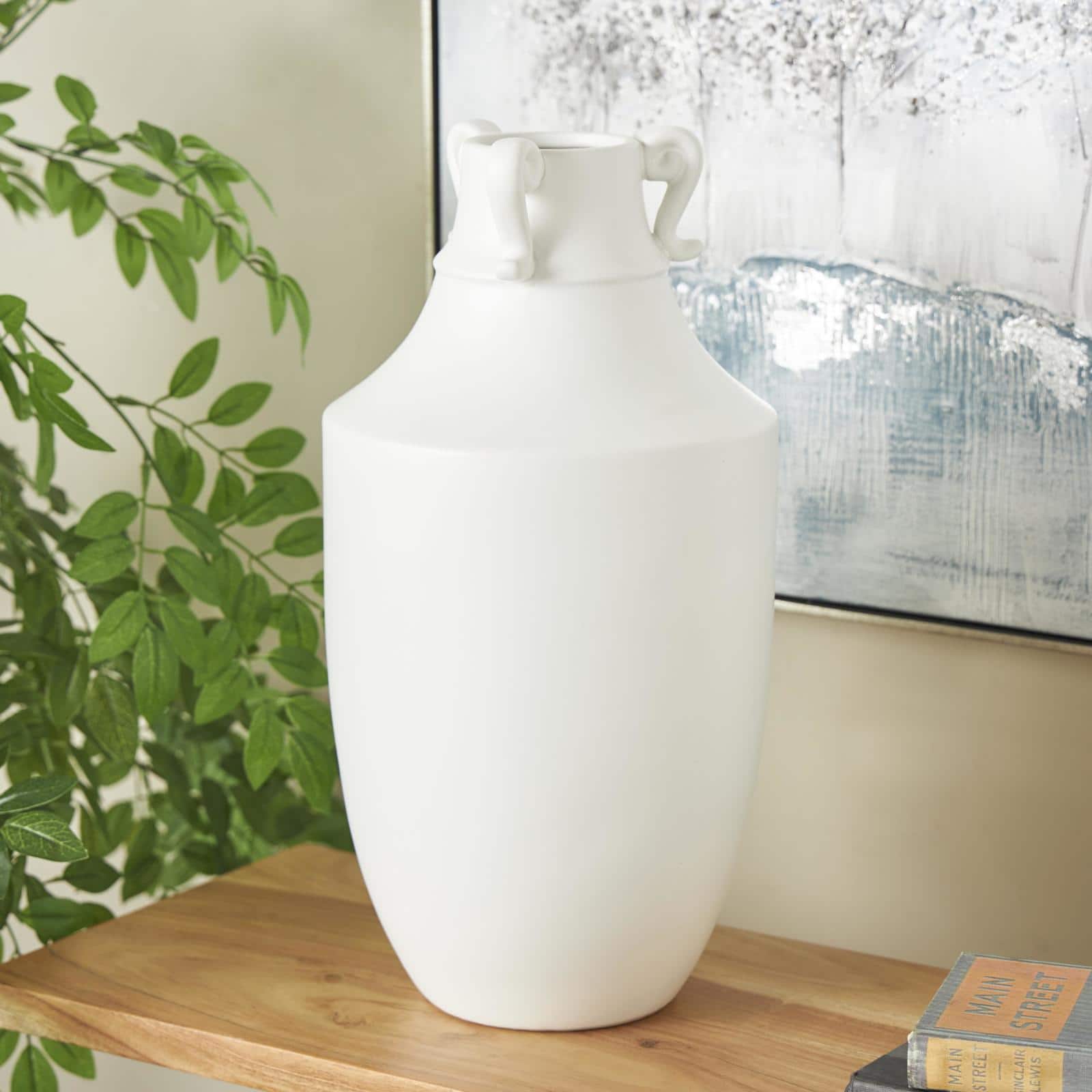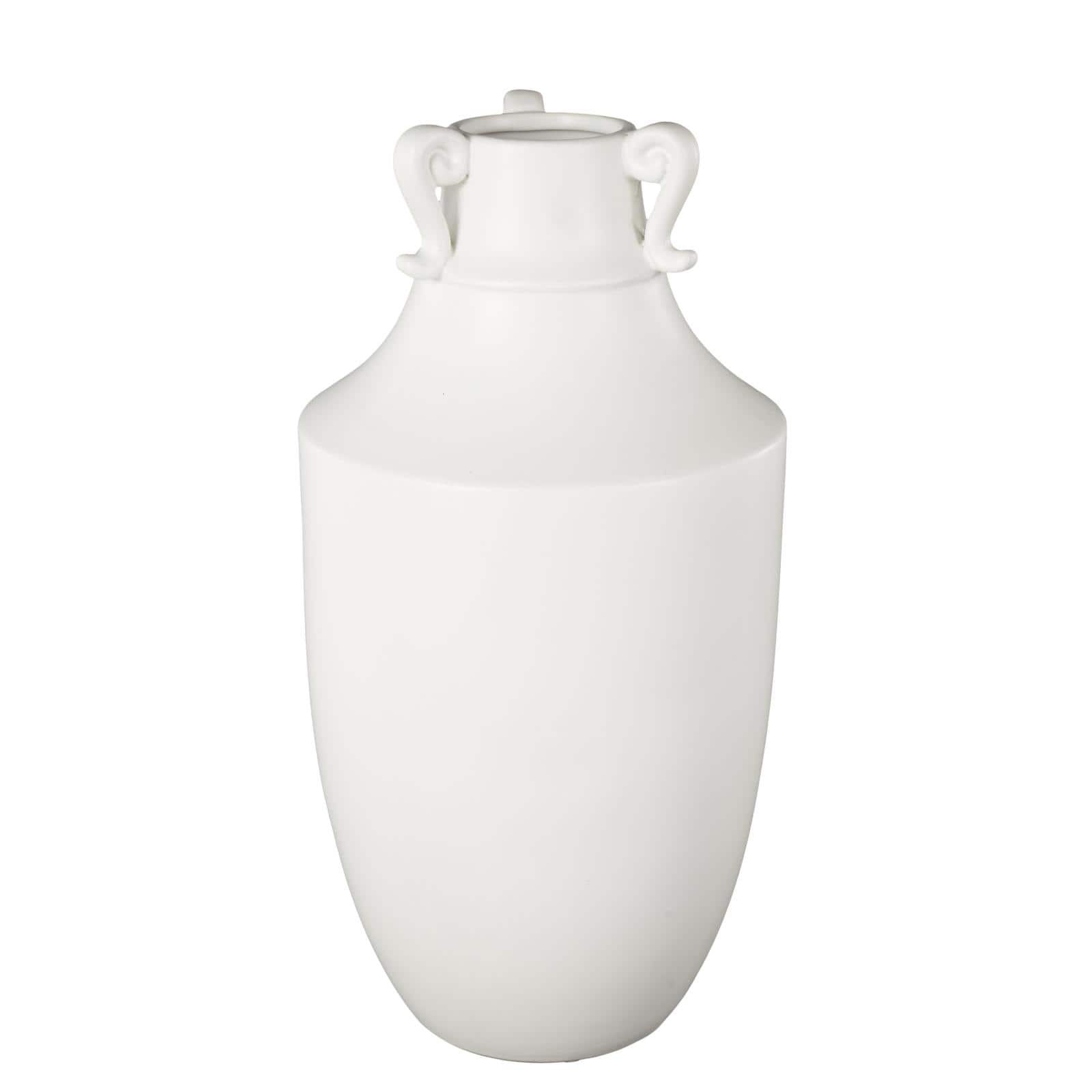18.25" White Ceramic Sleek Amphora Vase with Scroll Handles