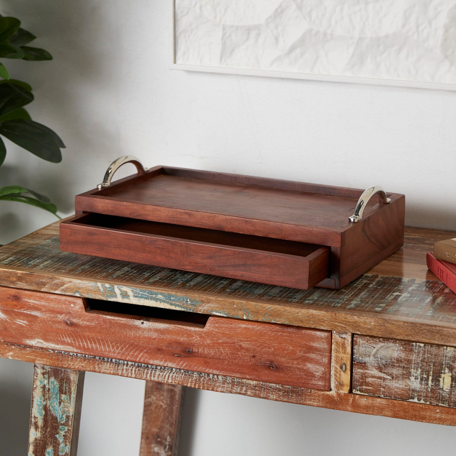18.25" Wood Hidden Drawer Tray with Black Metal Handles