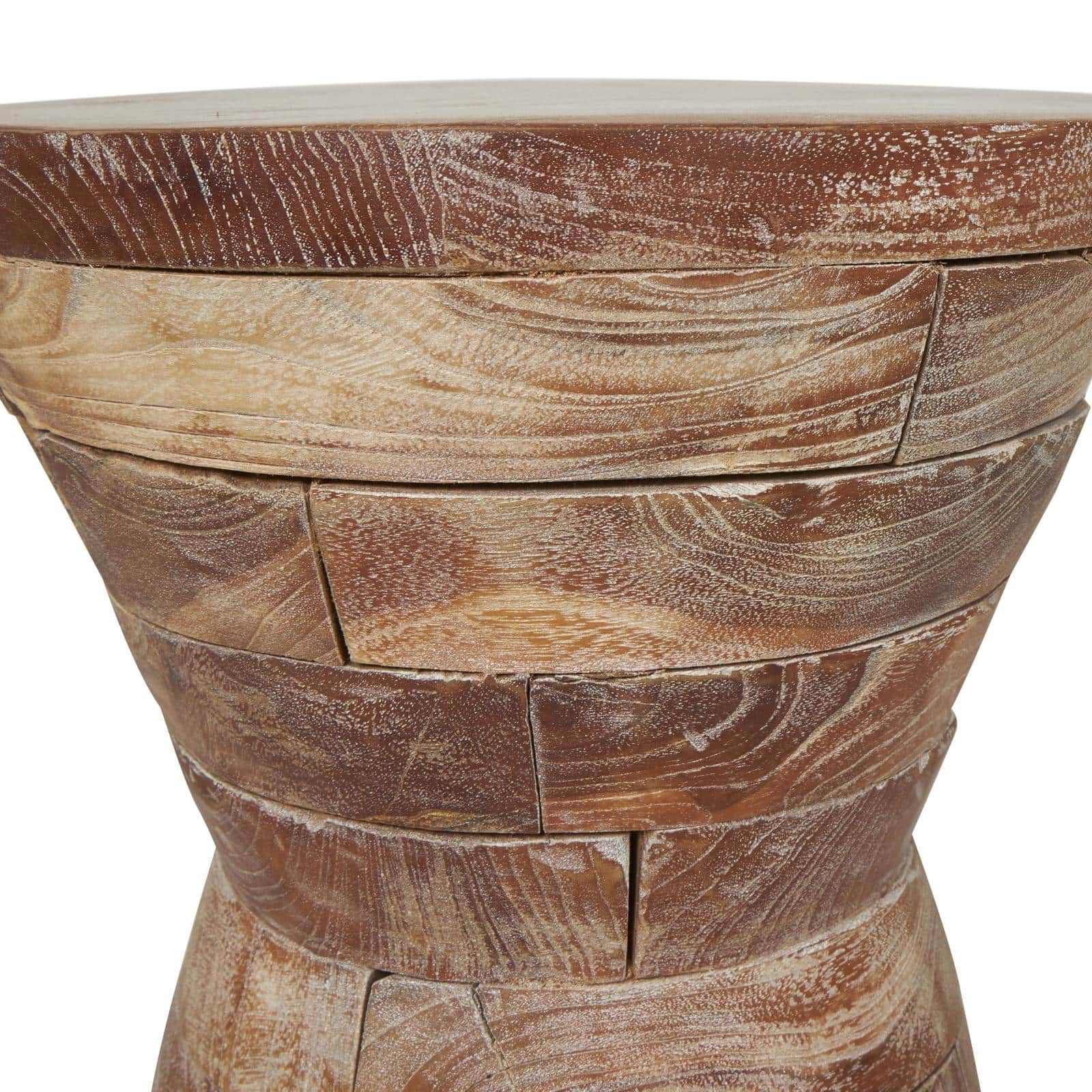 18.5" Brown Teak Wood Handmade Hourglass Accent Table with Stacked Wood Pieces