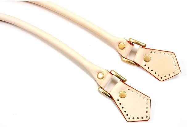 18.8" byhands 100% Genuine Leather Ivory Purse Handles/Tote Bag Handles, Gold Style Ring (22-4701)