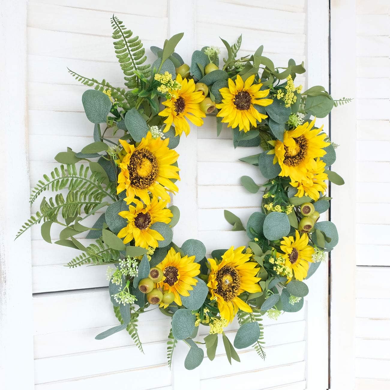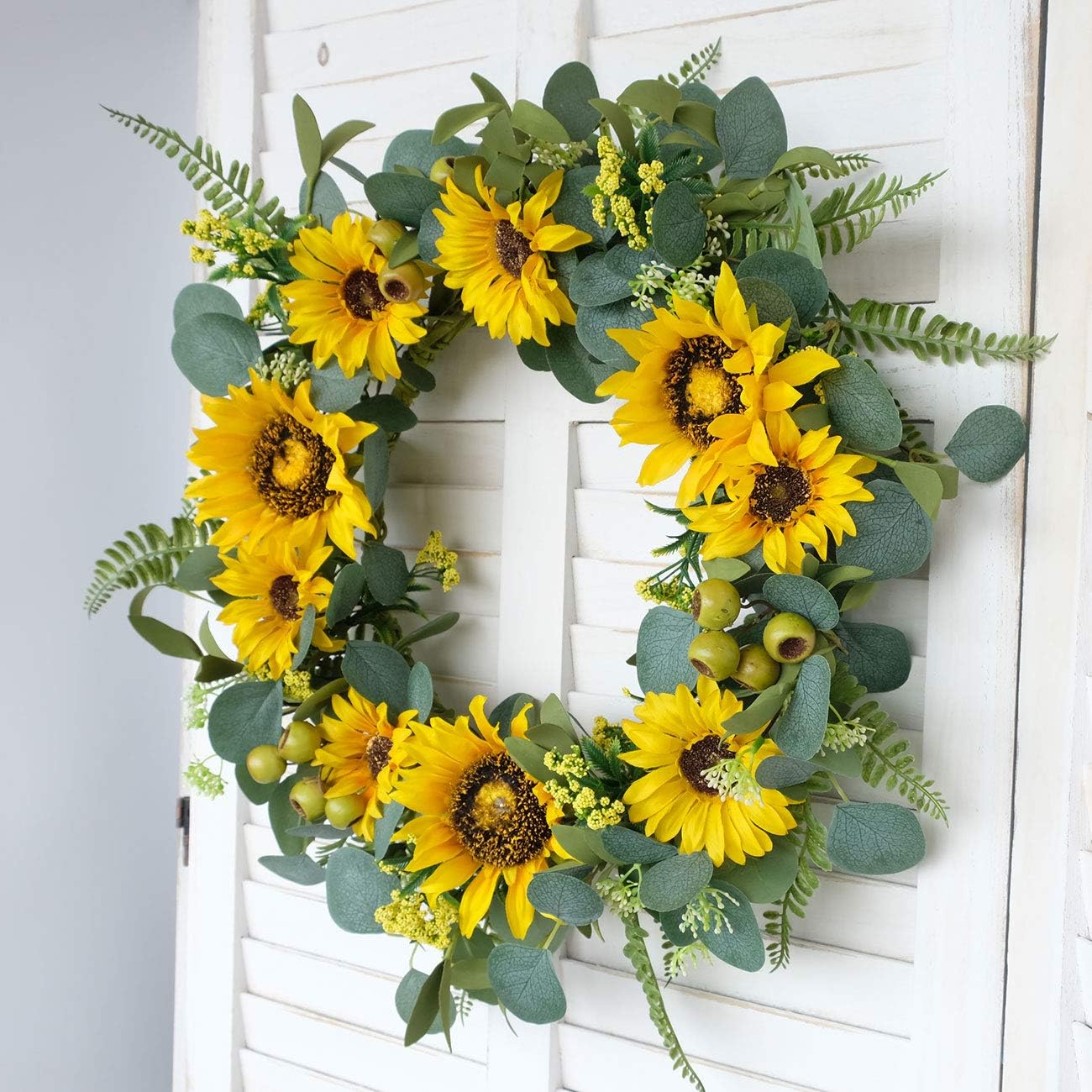 18”Artificial Sunflower Spring Wreath Rustic Farmhouse Decorative Floral Wreath for Front Door Window Wedding Outdoor, Yellow