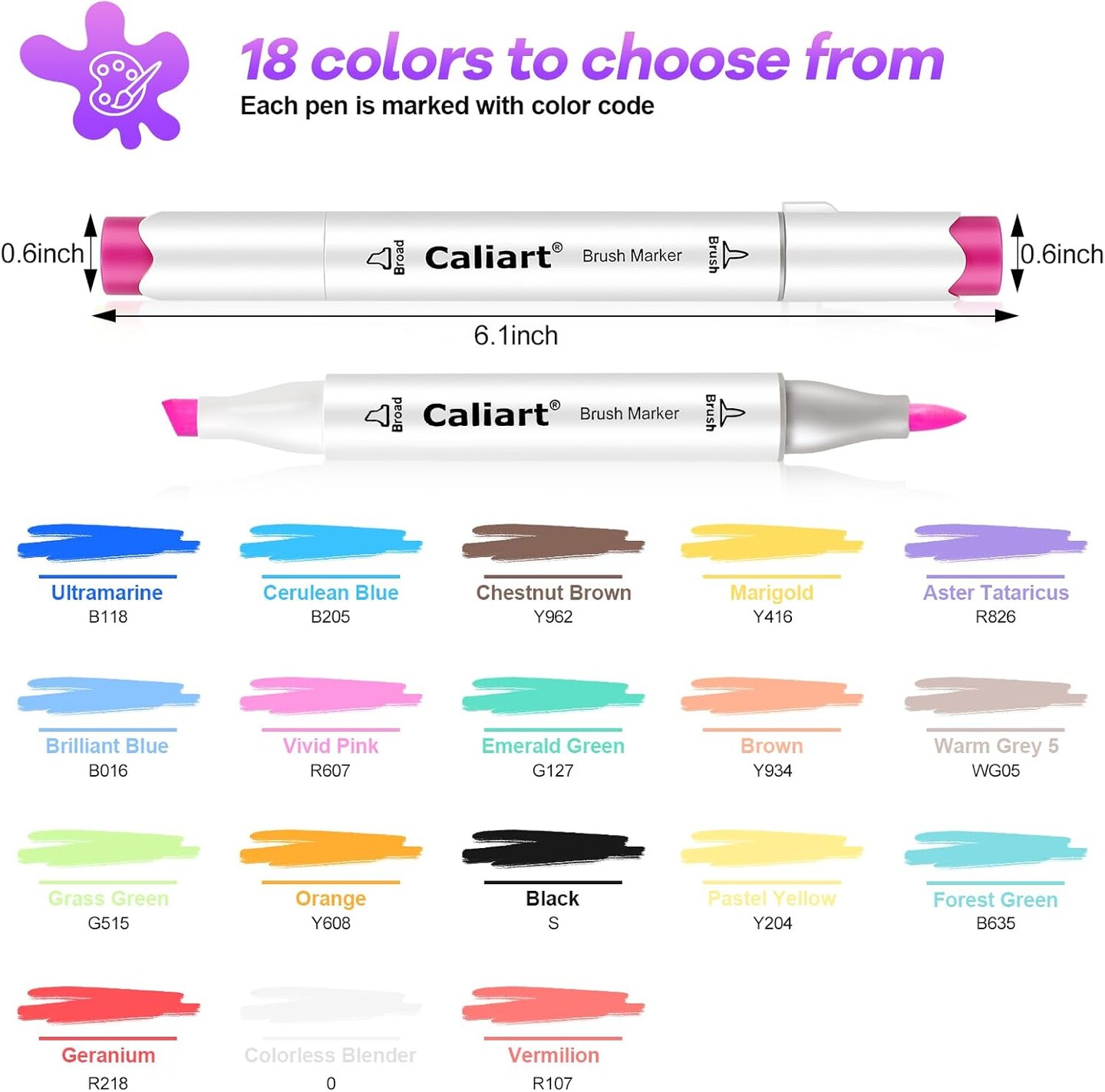 18-Color Dual-Tip Alcohol Marker Set – Brush & Chisel Tips for Adult Coloring, Sketching & Illustration