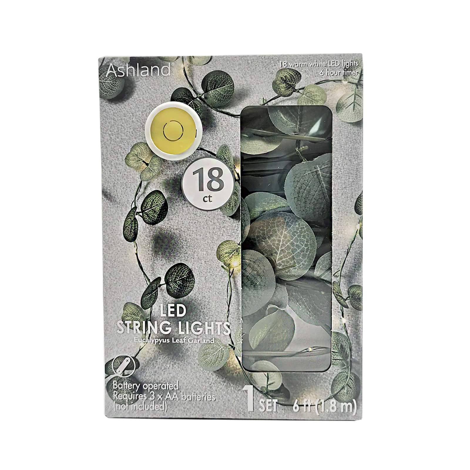 18ct. Warm White LED String Lights Eucalyptus Leaf Garland by Ashland®