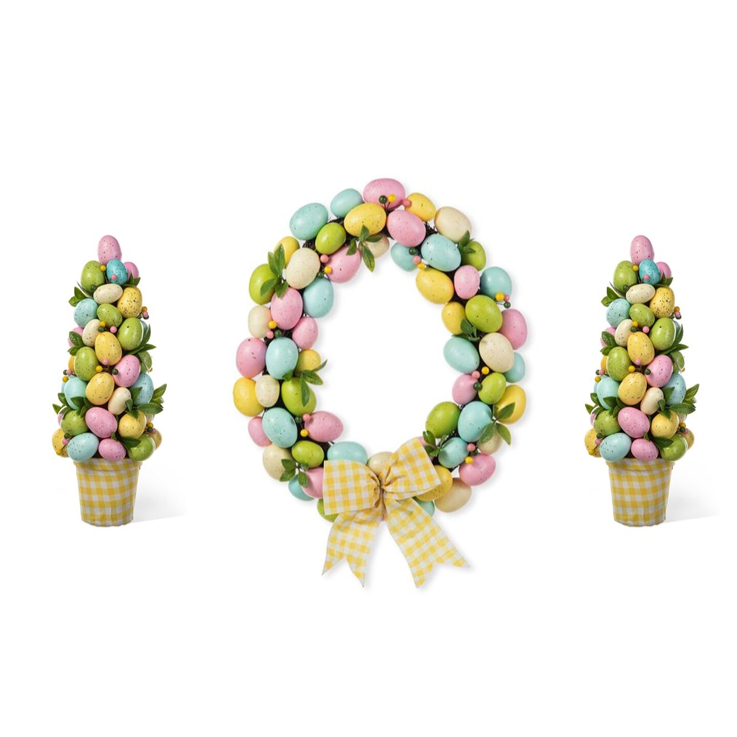 18"D Easter Egg Shaped Decorative Wreaths & 16"H Egg Table Tree Decor