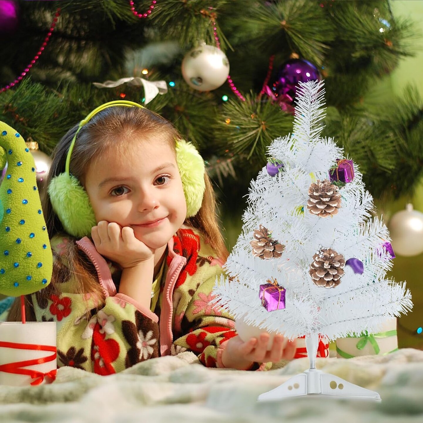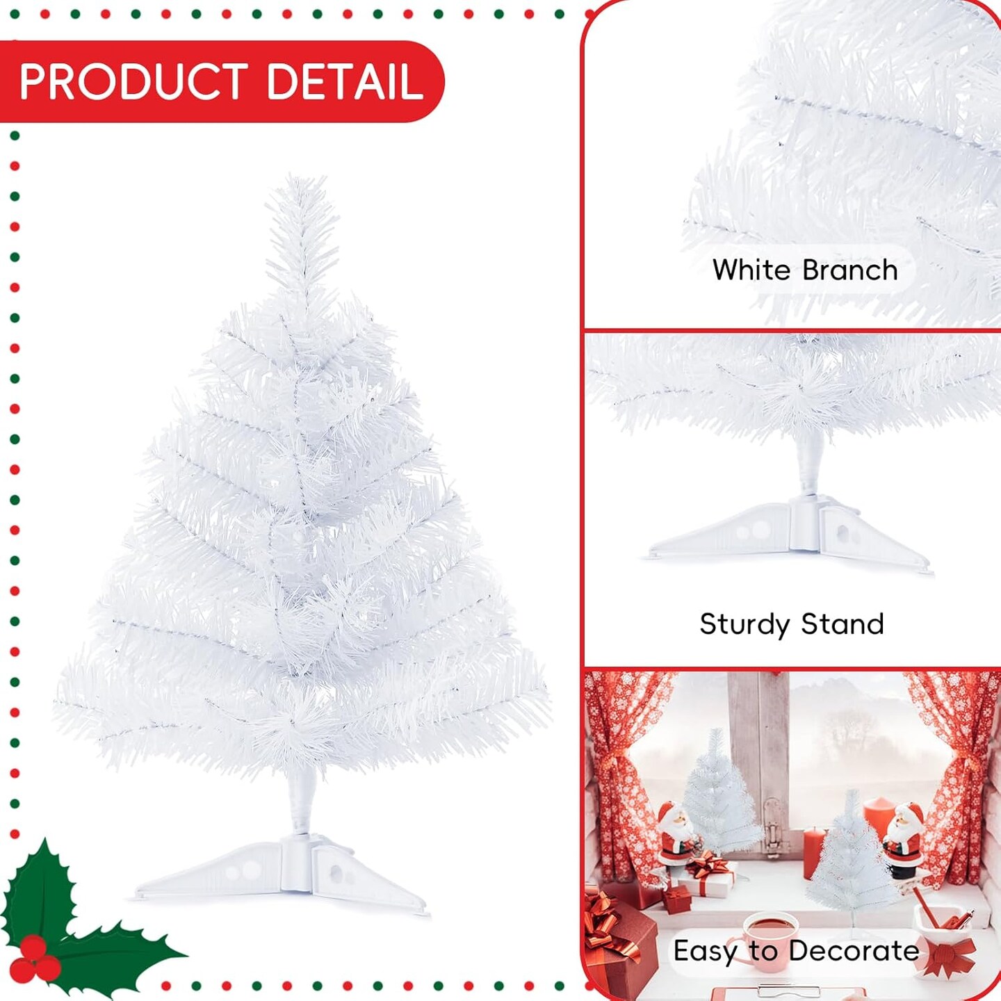18Inch Artificial Christmas Tree White Mini Tabletop (White) 9"D x 9"W x 18"H