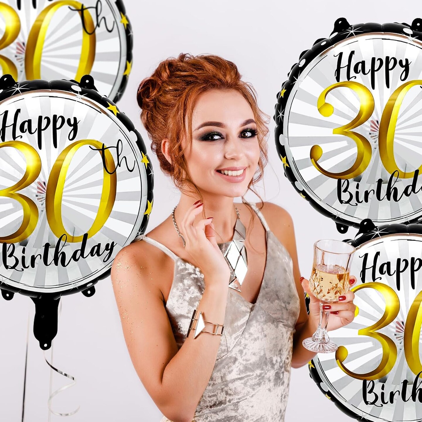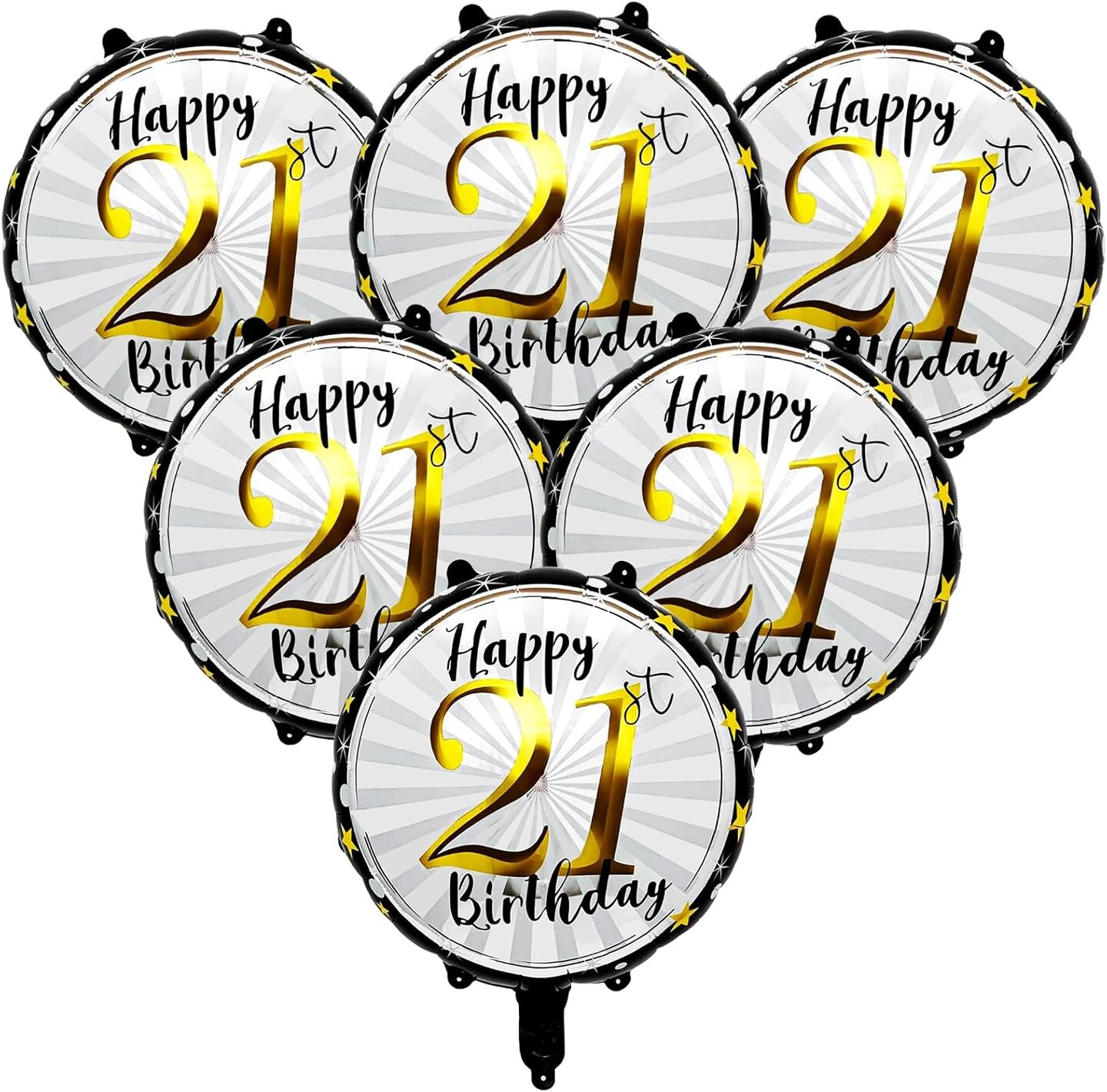 18inch Black and Gold Helium Foil Balloon,6pcs Happy 21st Birthday Balloons Kit (Blackgold)