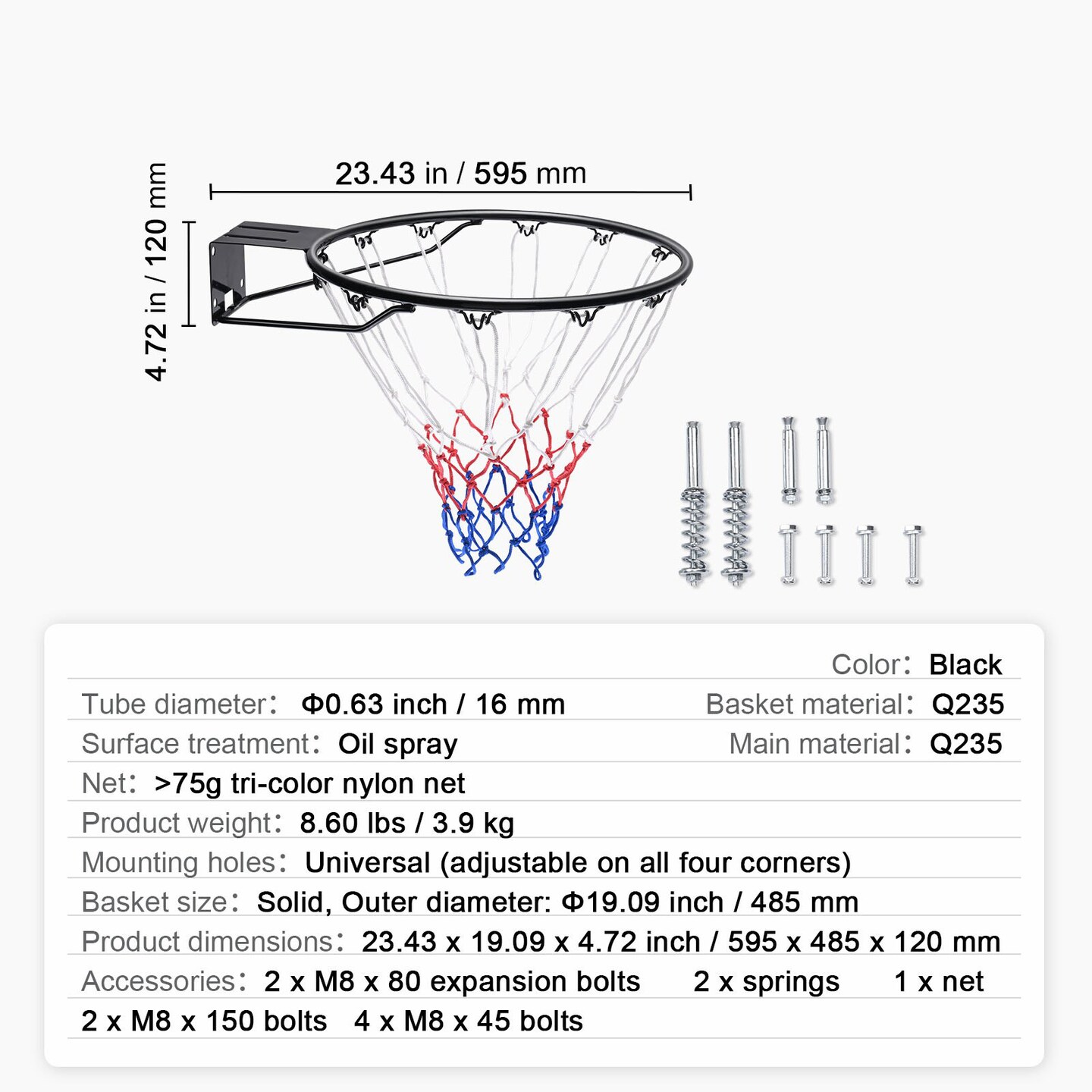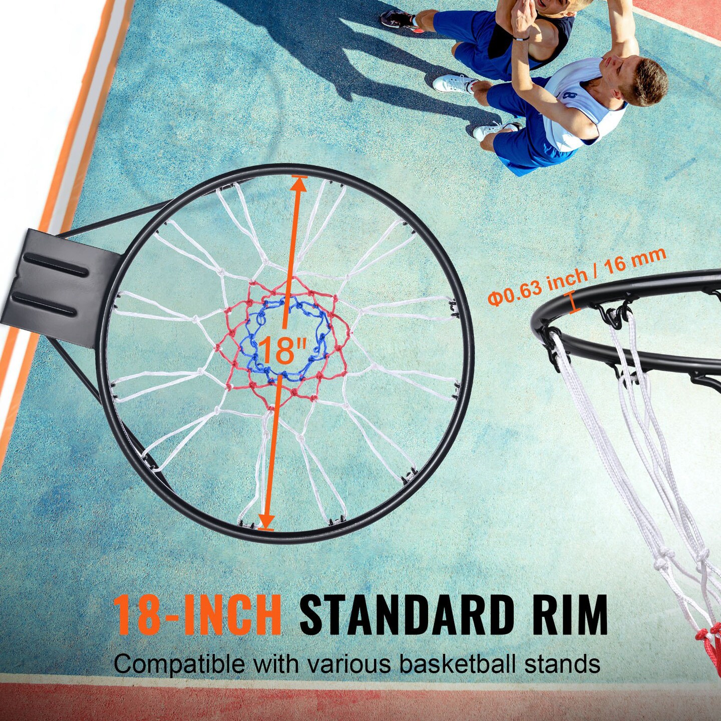 18-Inch Breakaway Basketball Rim with Sturdy Steel Frame Dual Springs and Nylon Net for Safe Play