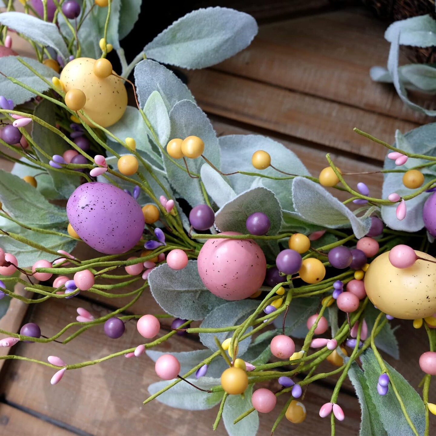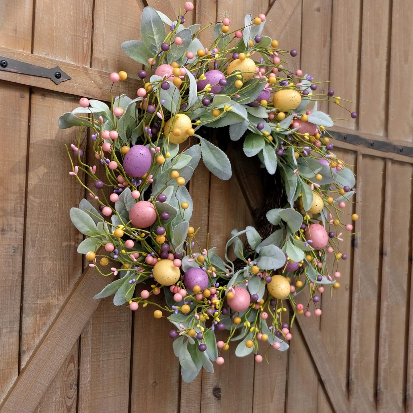 18-Inch Spring Easter Wreath – Colorful Eggs, Berries & Eucalyptus Leaves for Front Door, Indoor & Outdoor Home Decor
