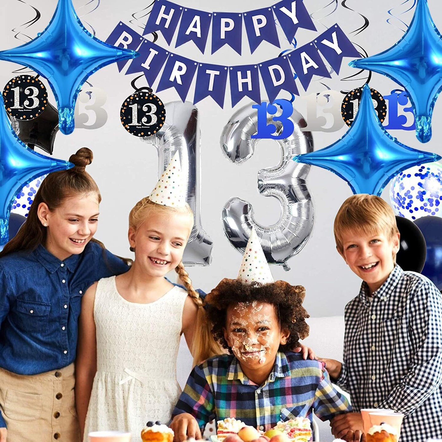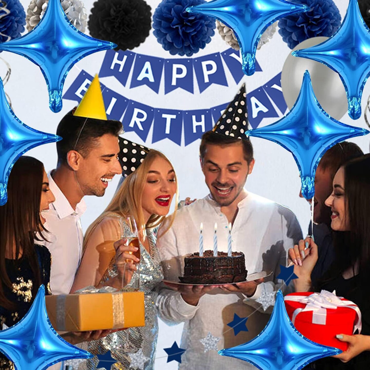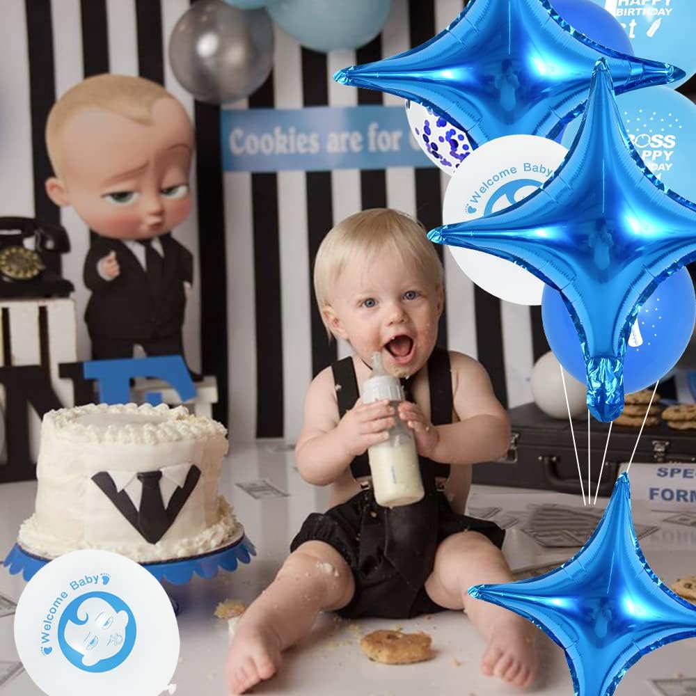 18inch Star Shape Foil Mylar Balloon,30 pcs Blue Four Angle Star Balloons for Birthday Party,Wedding,Valentine's Day, engagement party,Christmas,Baby Shower Backdrops Decorations