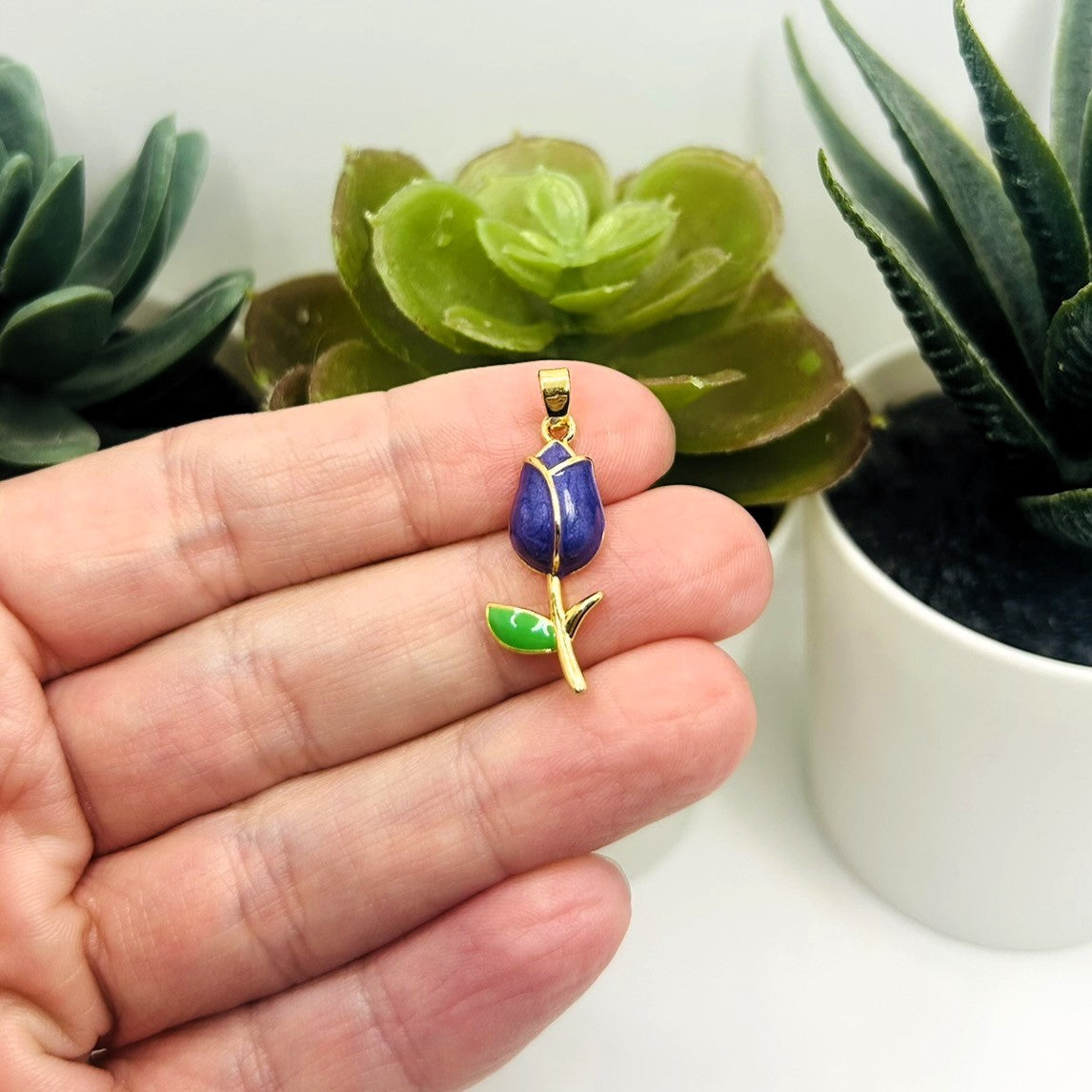18k Gold and Purple Tulip Charm, 29x10mm