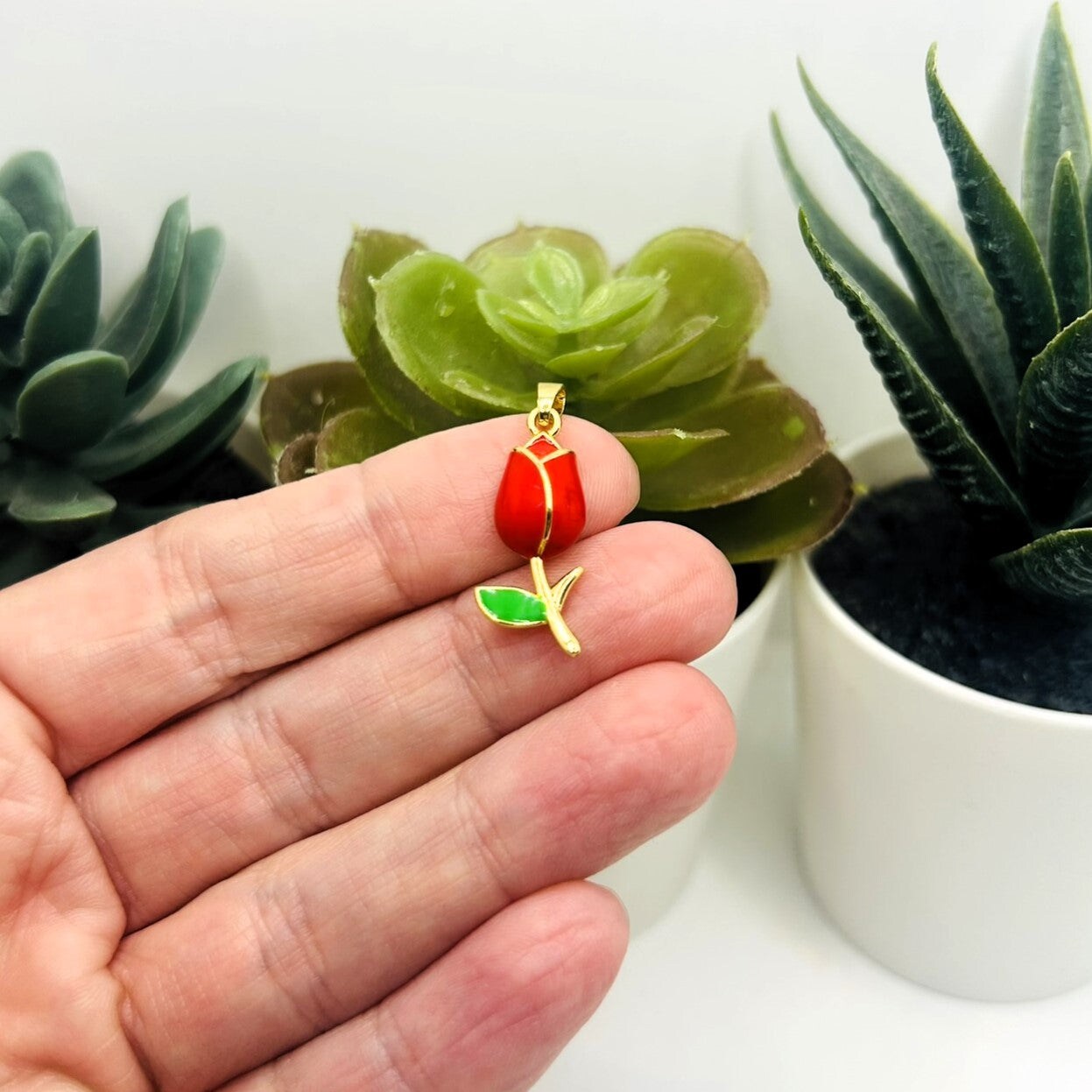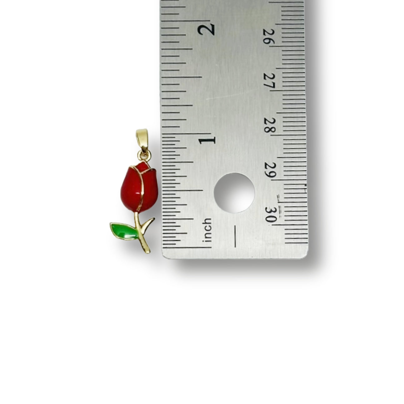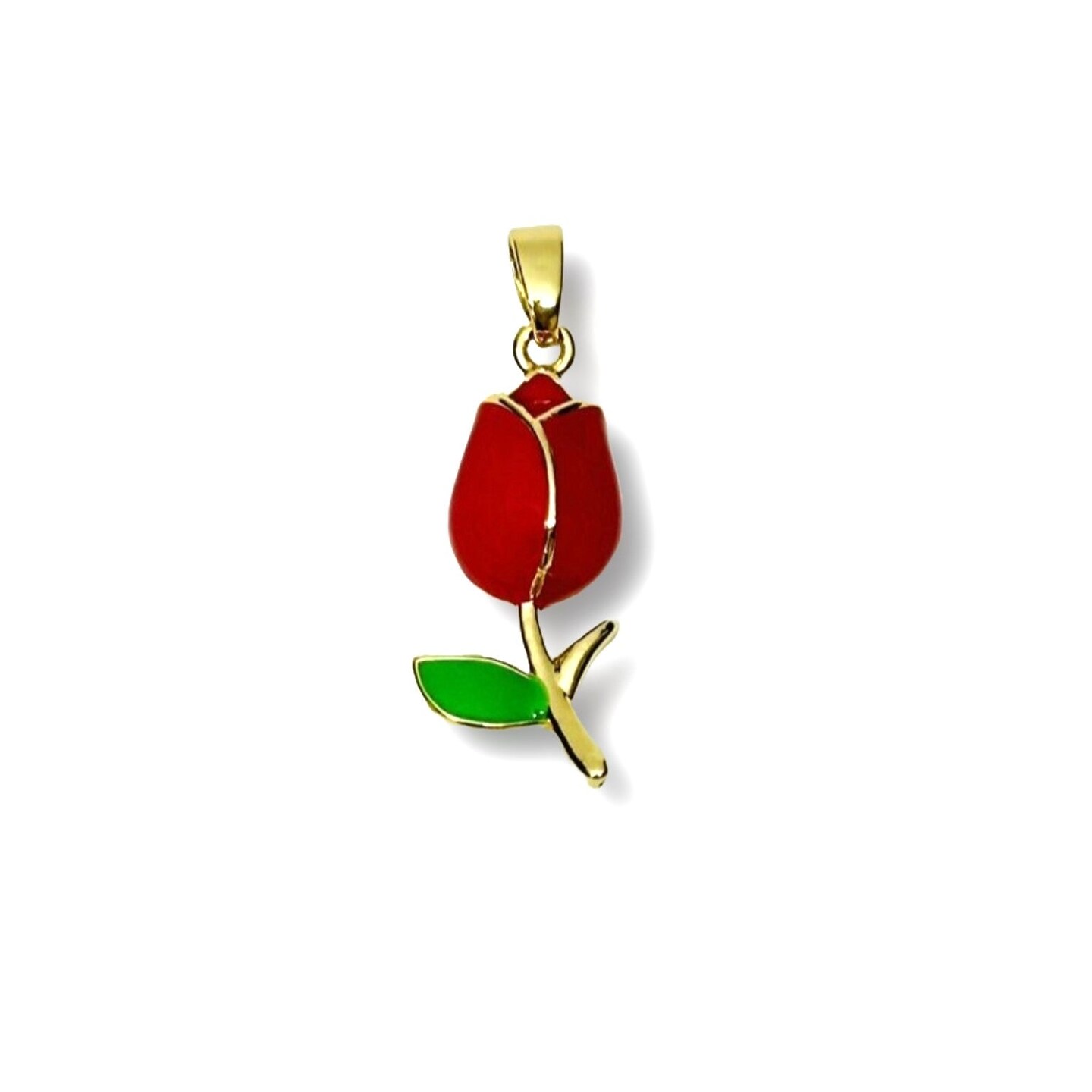 18k Gold and Red Tulip Charm, 29x10mm