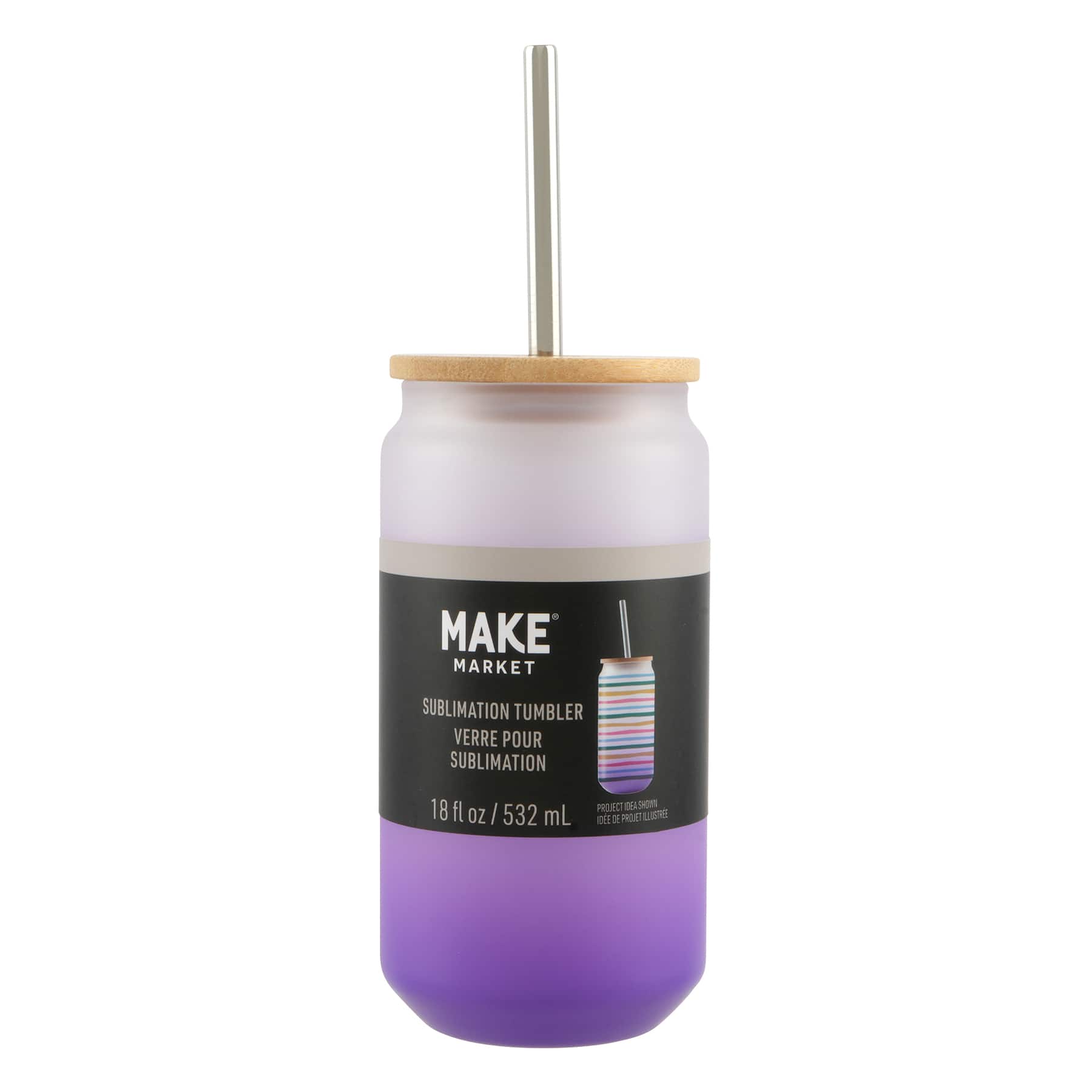 18oz. Frosted Glass Sublimation Tumbler with Bamboo Lid & Straw by Make Market®