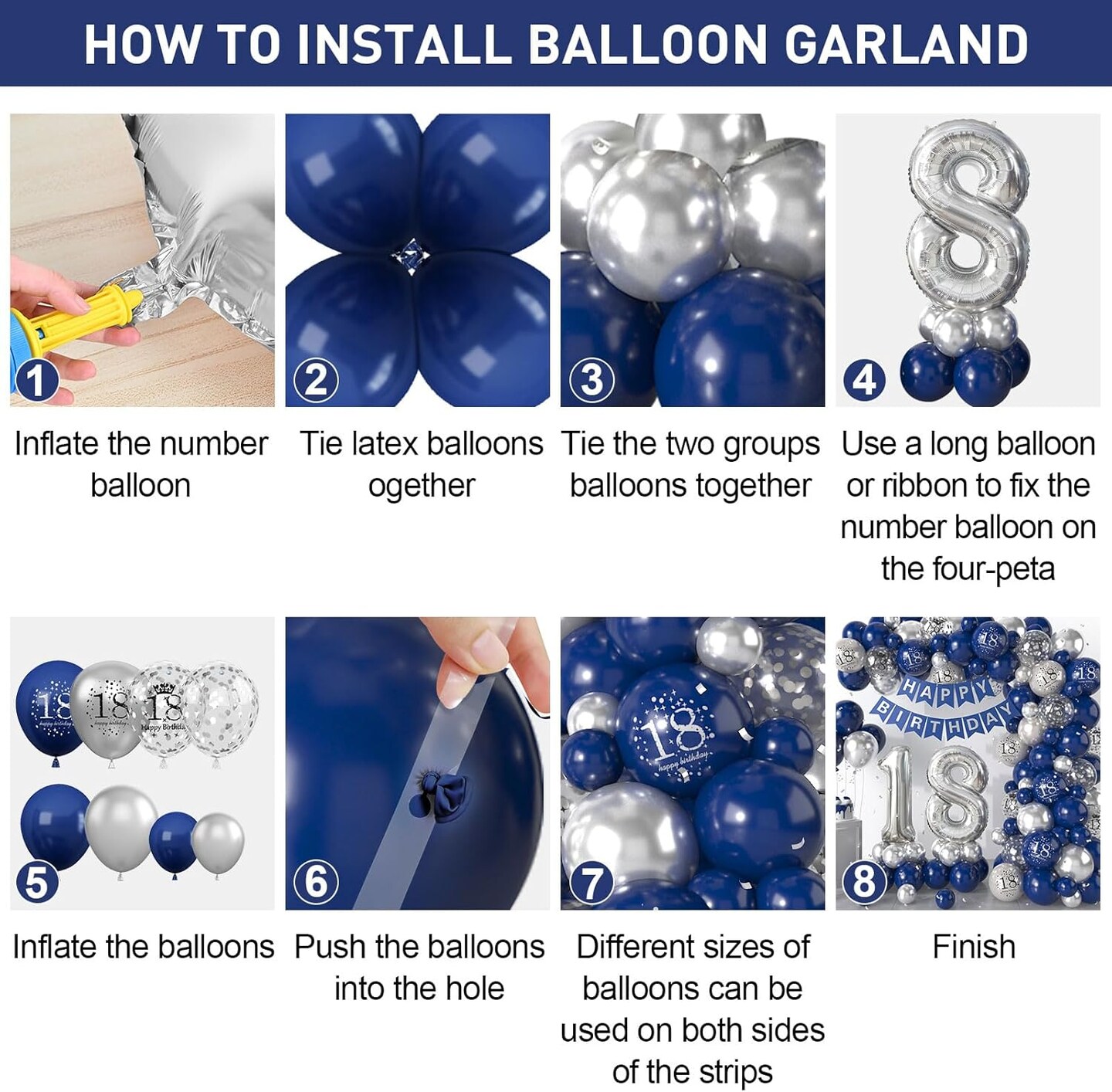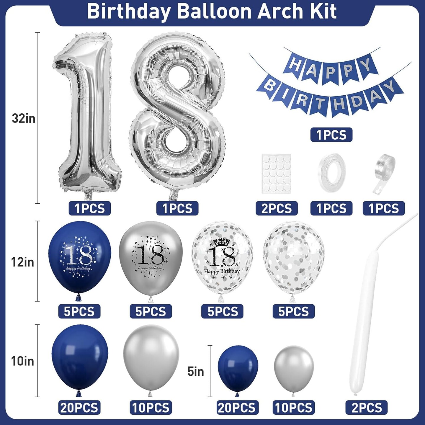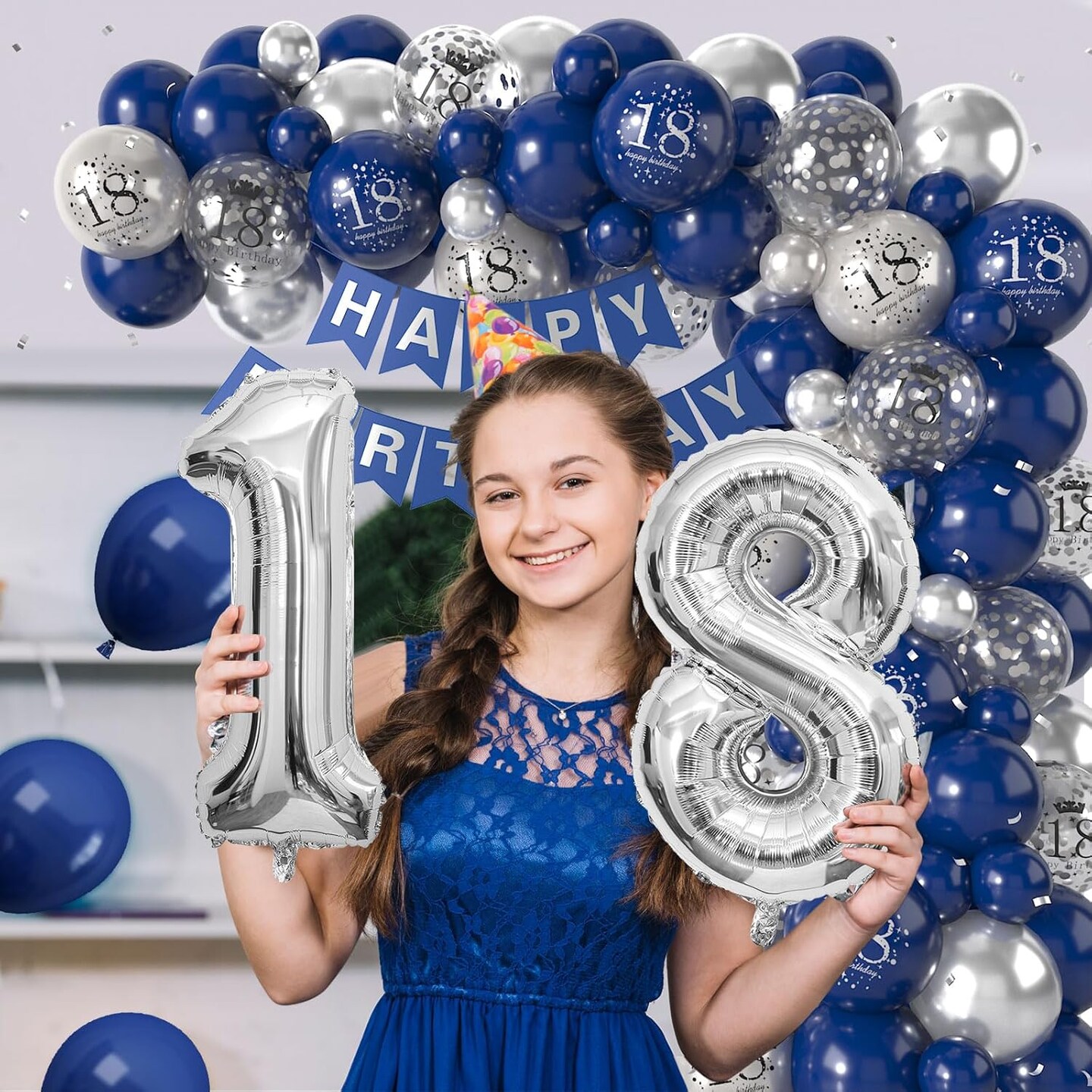 18th Birthday Decorations Navy Blue Silver,18th Birthday Balloon Garland Party Decorations with Number 18 Foil balloons,Happy Birthday Banner for Boys Girls 18th Birthday Party Decorations