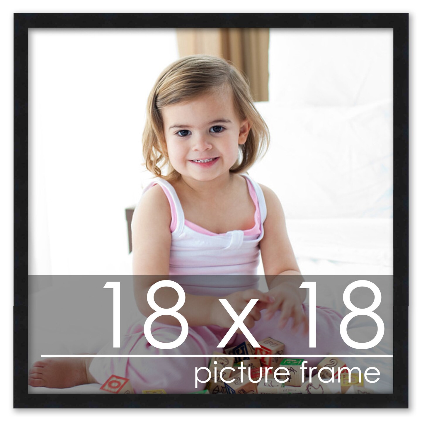 18x18 Simple Black Picture Frame - UV Acrylic, Foam Board Backing, Hanging Hardware