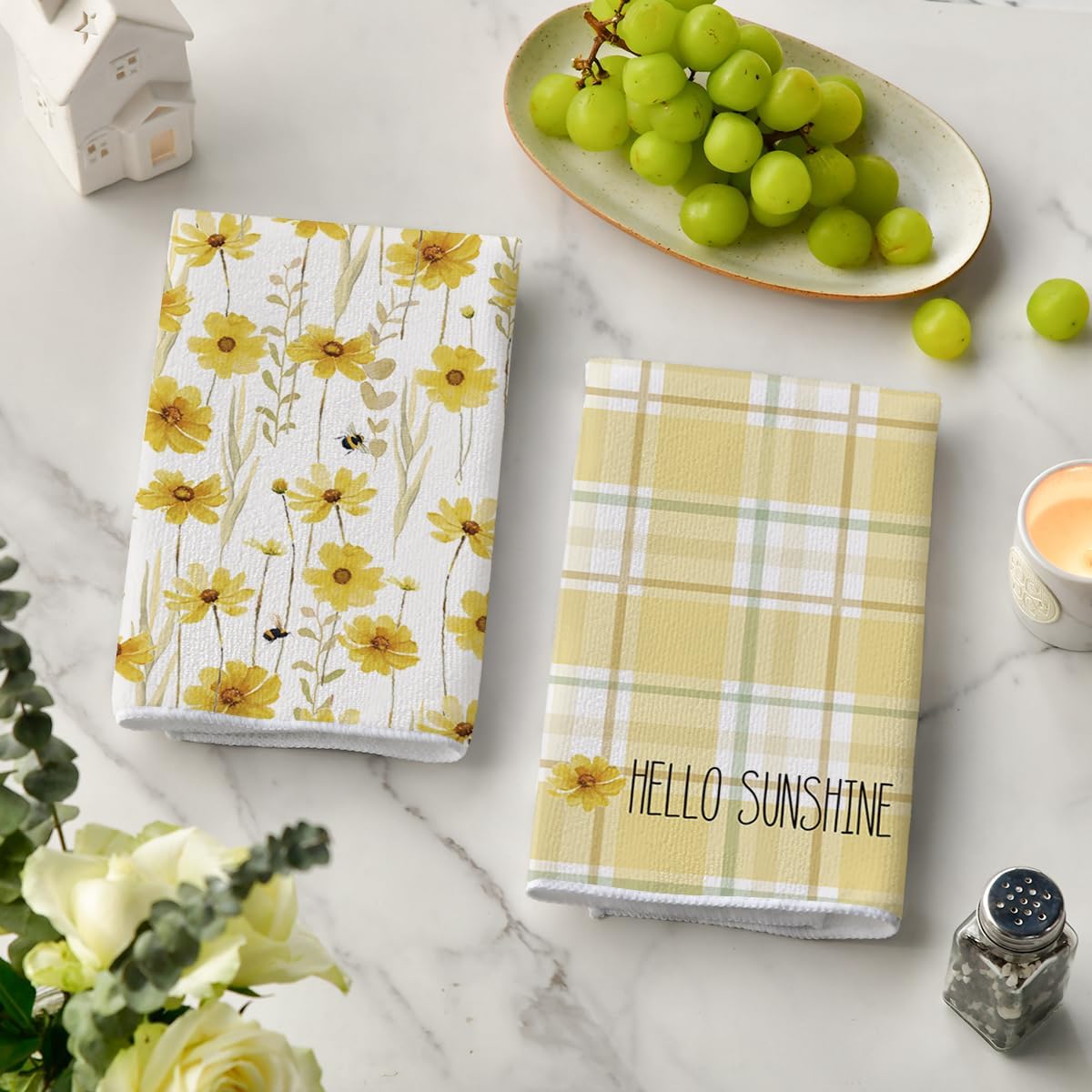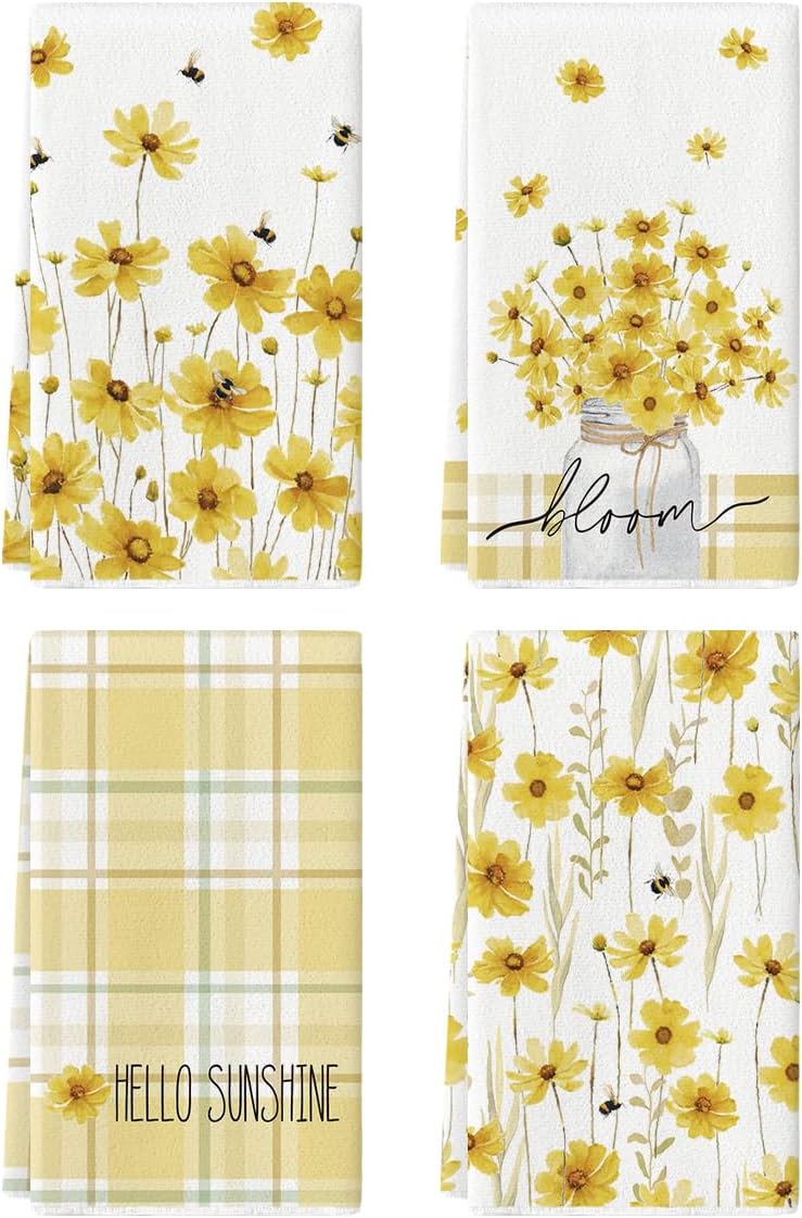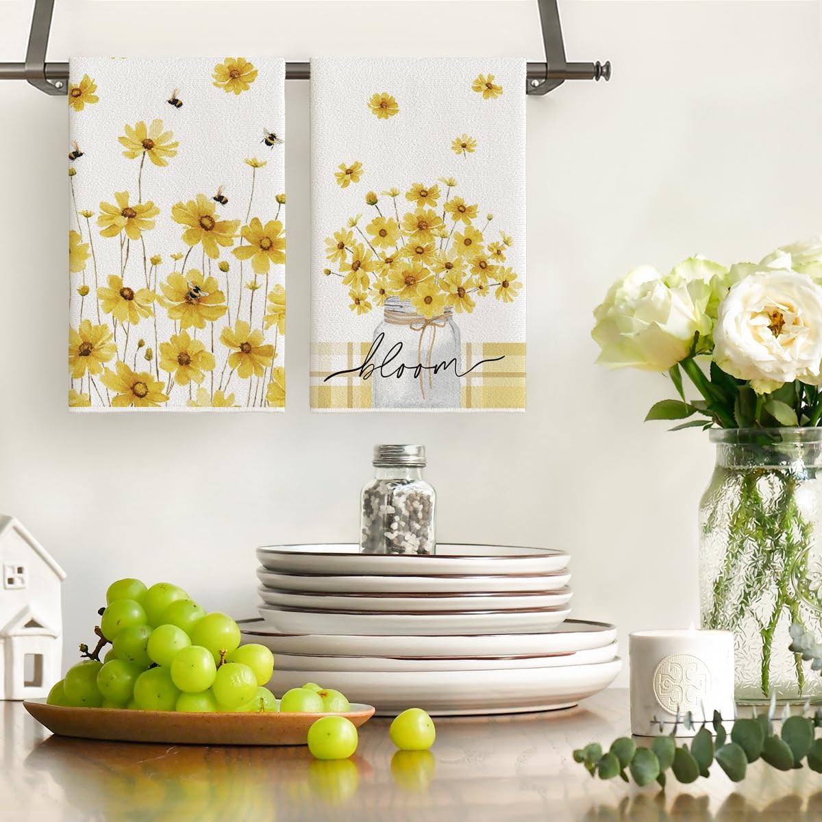 18x26 Yellow Floral Vase Spring Kitchen Towels Dish Towels