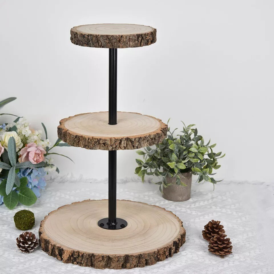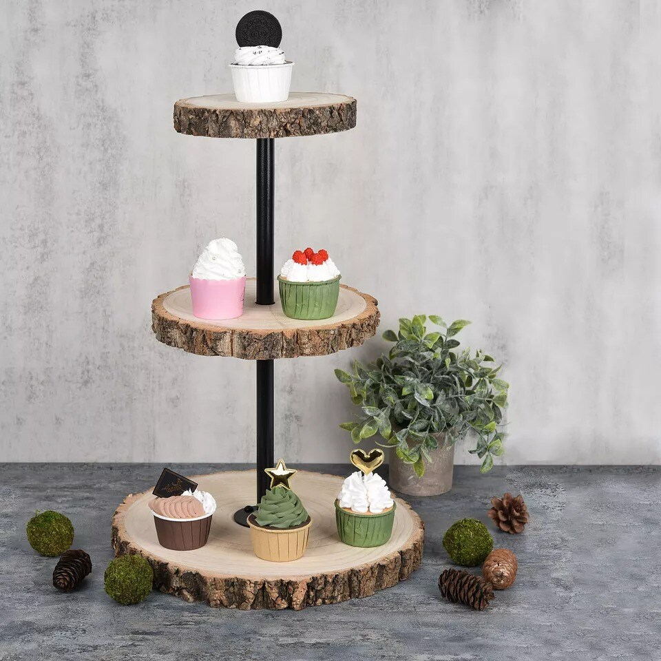 19" Brown 3 Tier Round Natural Wooden Cupcake Dessert Stand Party Decorations