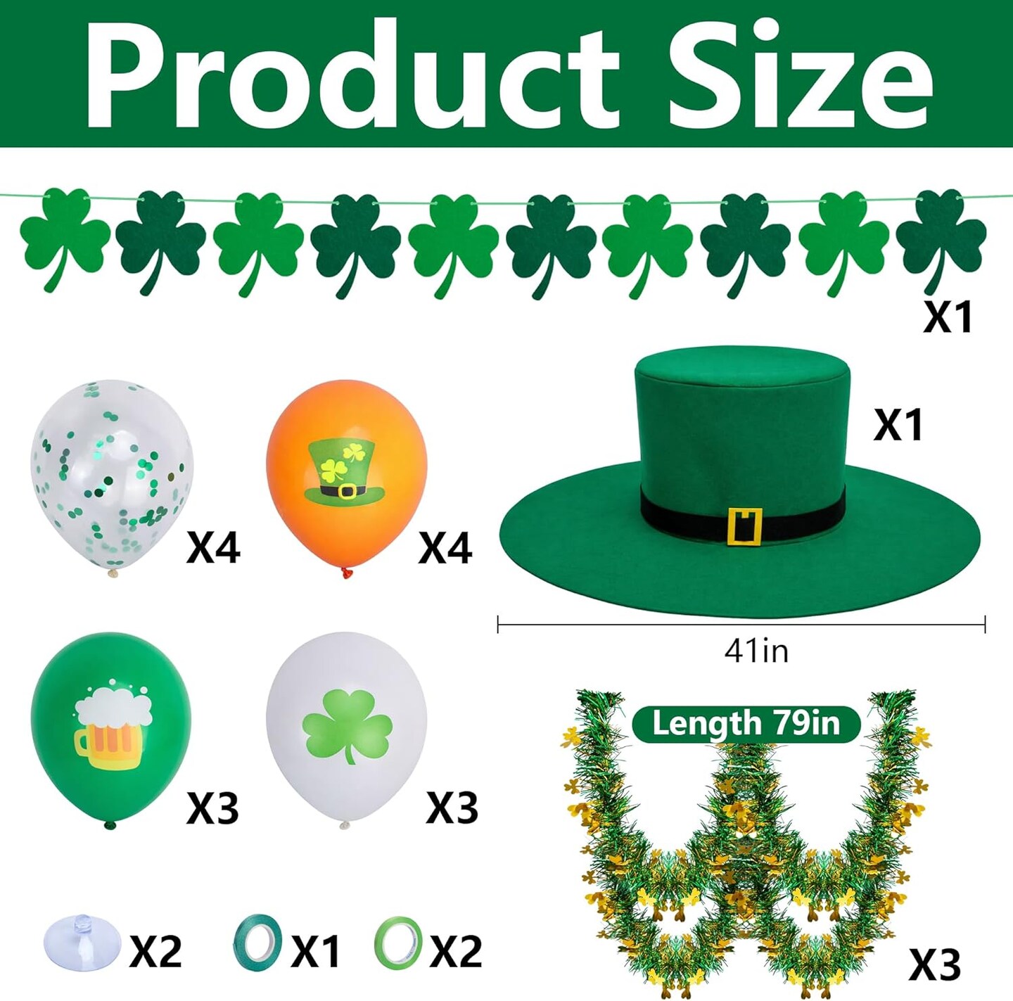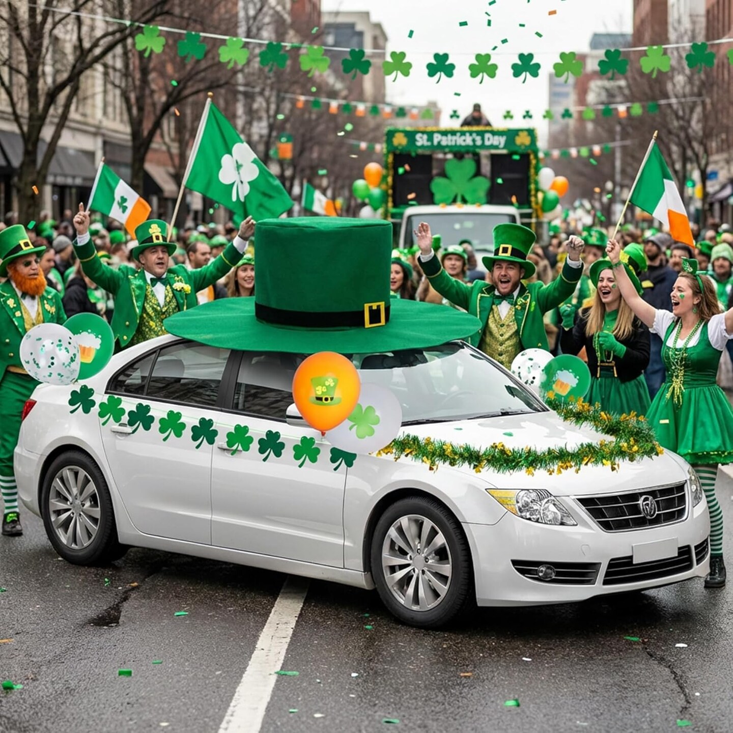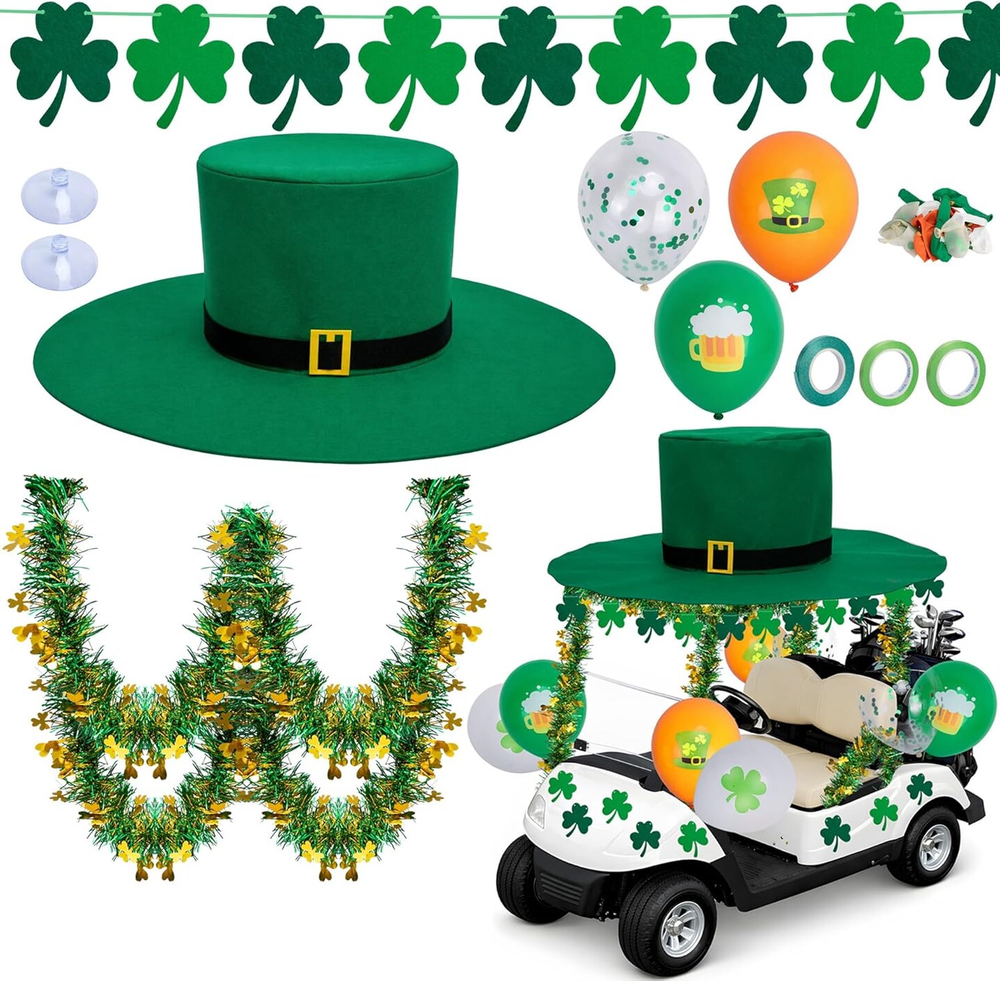 19 Pcs St. Patrick’s Day Parade Car Decoration Kit – Giant Hat, Shamrock Banner & Balloons – St. Patricks Party Supplies