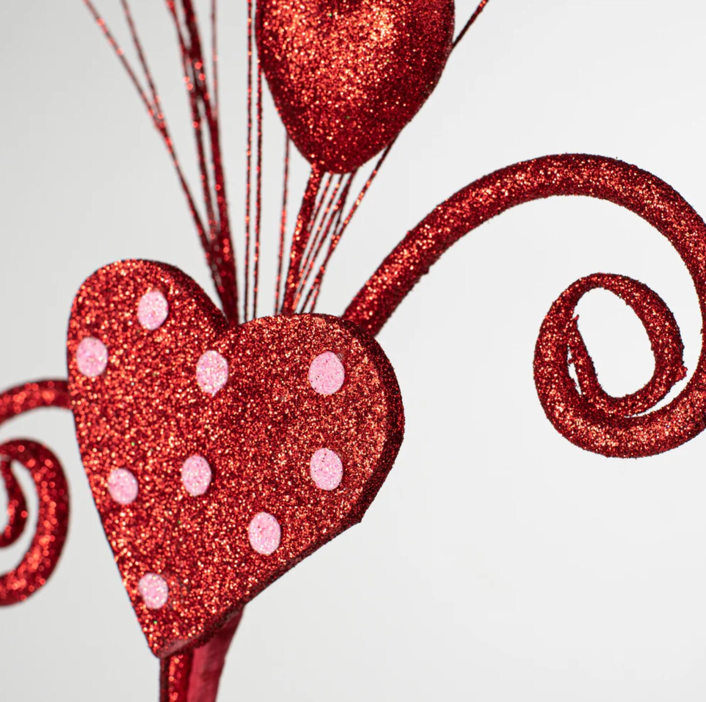 19" Red Glittered Heart Spray Pick - Valentine's Day Floral Decoration